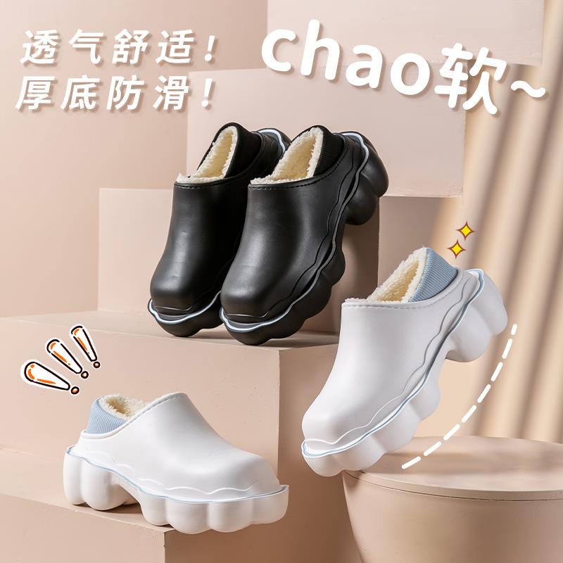 季 百搭休闲拖鞋 外穿室内家居保暖家用毛绒厚1004c 棉拖鞋 秋冬男士