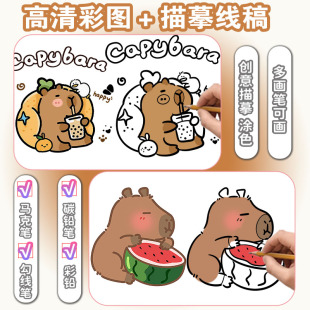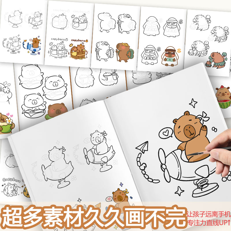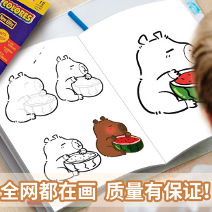 卡皮巴拉线稿描摹本画画本儿童素描临摹画册幼儿园涂色本可爱动物