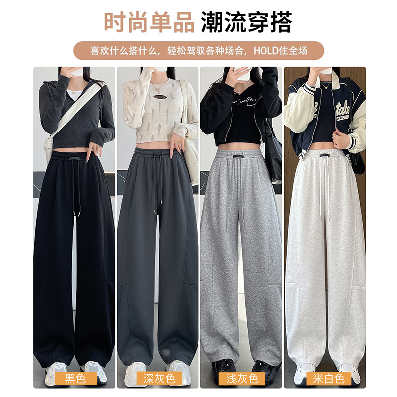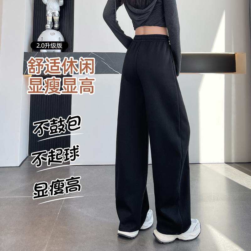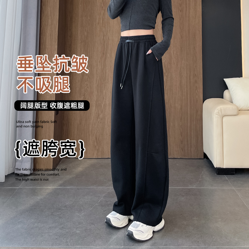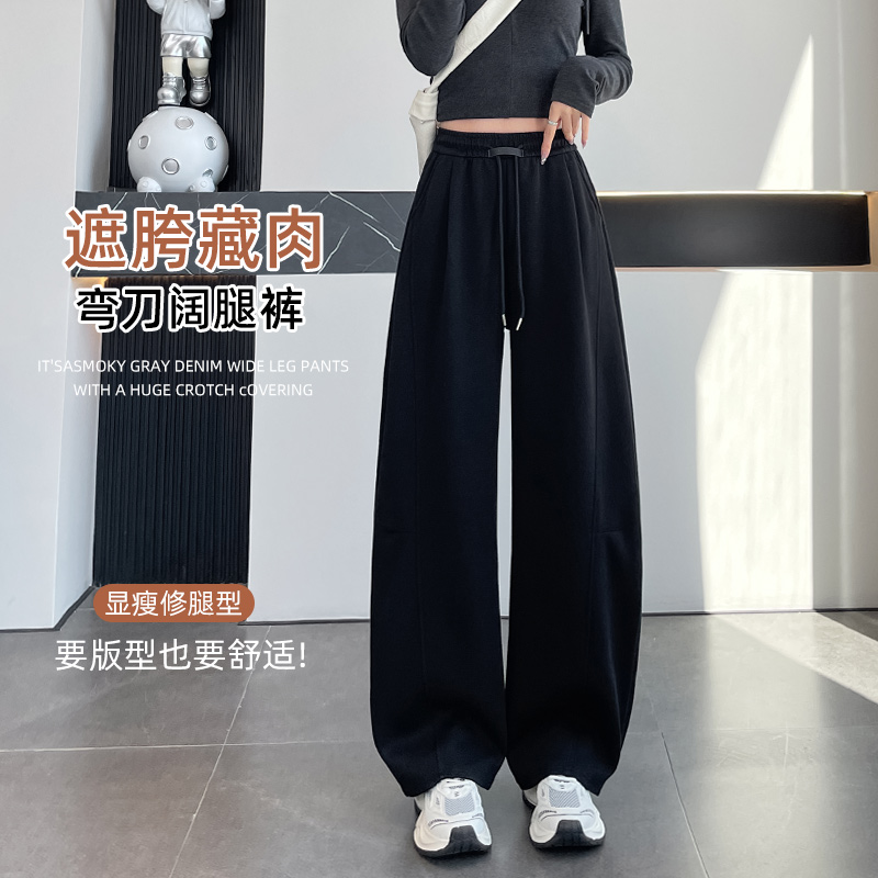子 镰刀松紧高腰抽绳针织亲肤香蕉运动裤 弯刀阔腿裤 女黑色春秋新款