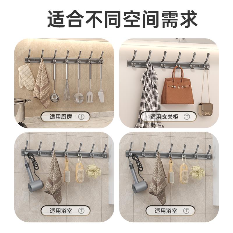 不锈钢连排挂钩厨房墙壁排钩浴室挂衣架可打孔强力承重304一排钩