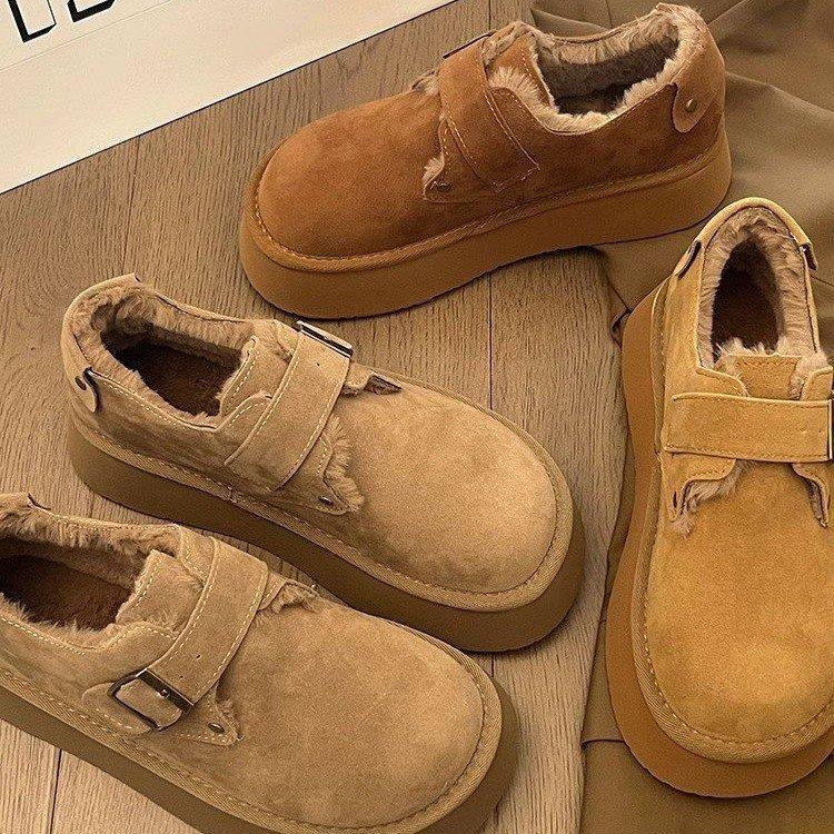 棉鞋 一脚蹬厚底雪地靴豆豆毛毛鞋 女款 2024年新款 冬季 加绒勃肯鞋