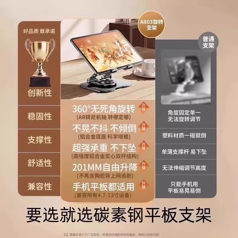 平板电脑支架ipad手机通用旋转碳素钢手机架子金属追剧直播便携手机支架看剧懒人桌面平板支架手机架子折叠