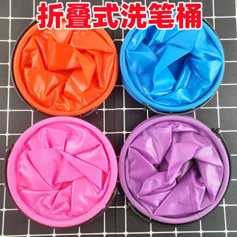 梅花型颜料调色盘学生美术用水彩水粉笔盒洗笔筒三线调色板小水桶