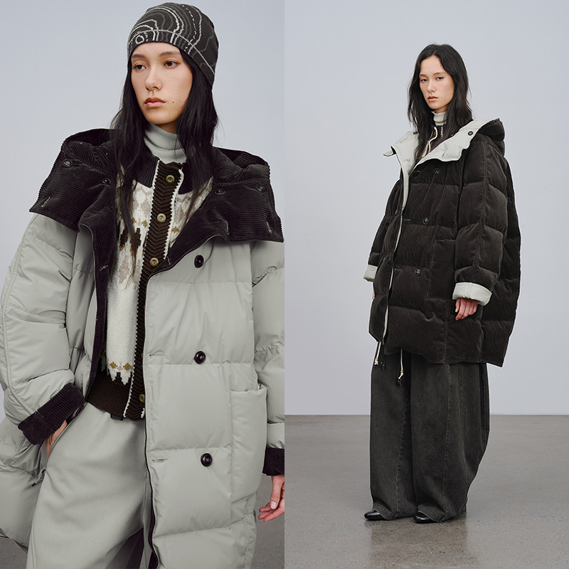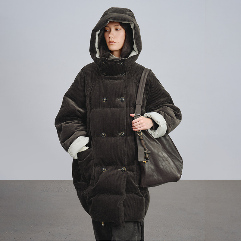 半圆原创女装 2025秋冬双面穿带帽蓬松面包羽绒服女高级感 复古