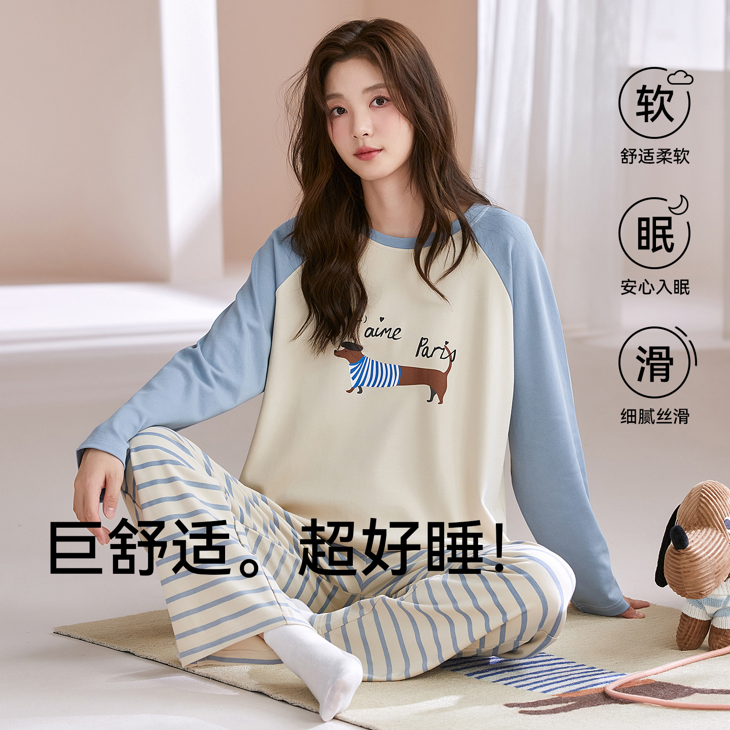 家居服套装 猫人睡衣女款 纯棉宽松大码 可外穿长袖 女可外穿 2025新款