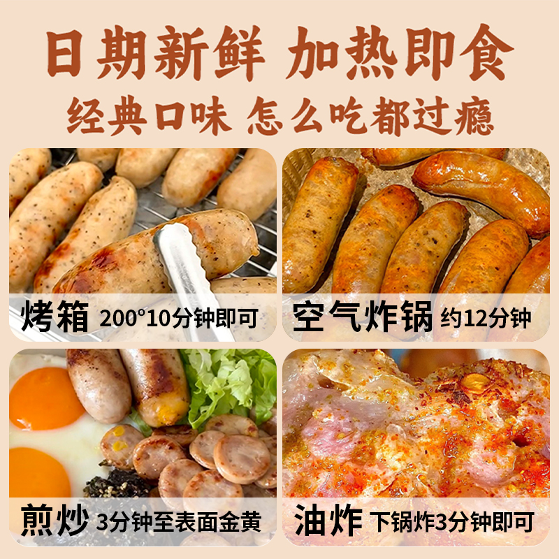 火山石烤肠肉肠地道纯脆皮香肠黑胡椒火腿肠批发烧烤空气炸锅食材