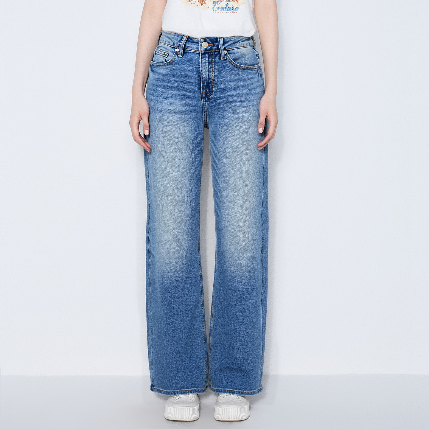 女裤 马天奴2025秋冬新款 水洗时尚 子长裤 浅蓝色高腰宽松直筒牛仔裤