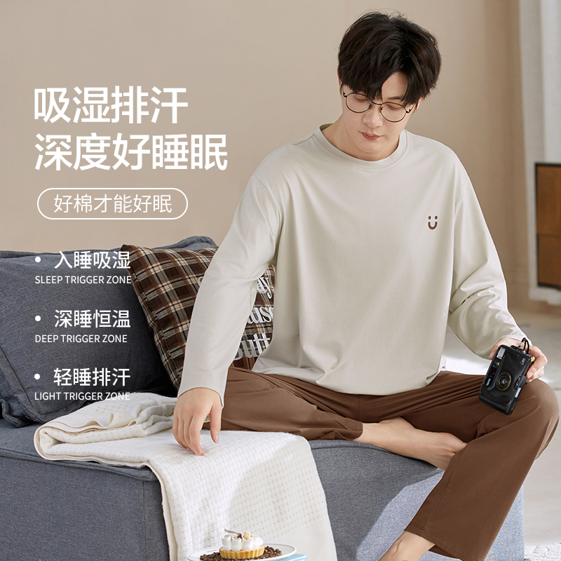 可外穿四季 棉家居服2025秋冬新款 通用 睡衣莫代尔长袖 恒源祥男士