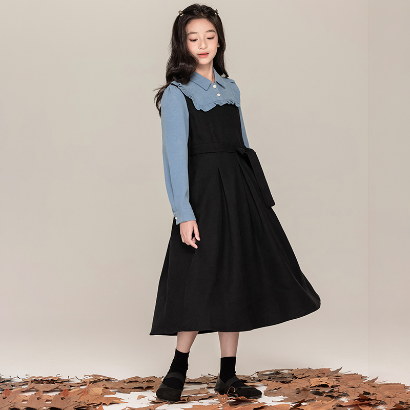 连衣裙早秋设计感系带显瘦条纹a字裙子 学院假两件衬衫 KEIKO 美式