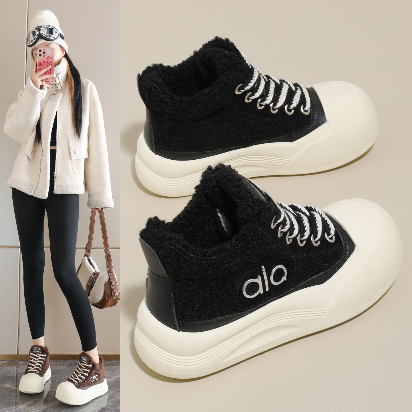 男款 高帮女小麦色运动鞋 冬季 加绒复古休闲鞋 新款 李宁月白2MID板鞋