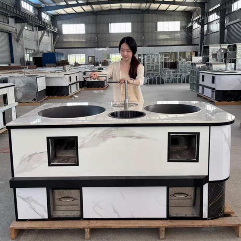 有甜新款 柴火灶家用烧木柴不锈钢大锅台移动无烟地锅土灶台新农村