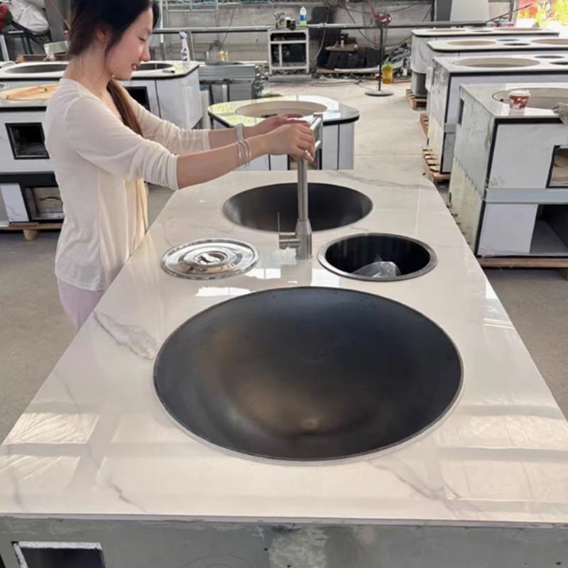 新款 304不锈钢灶炉用柴火灶家用烧木柴大锅台农村无烟移动大铁锅