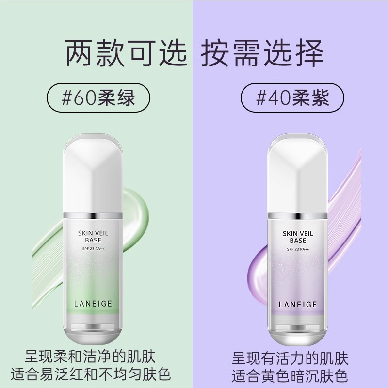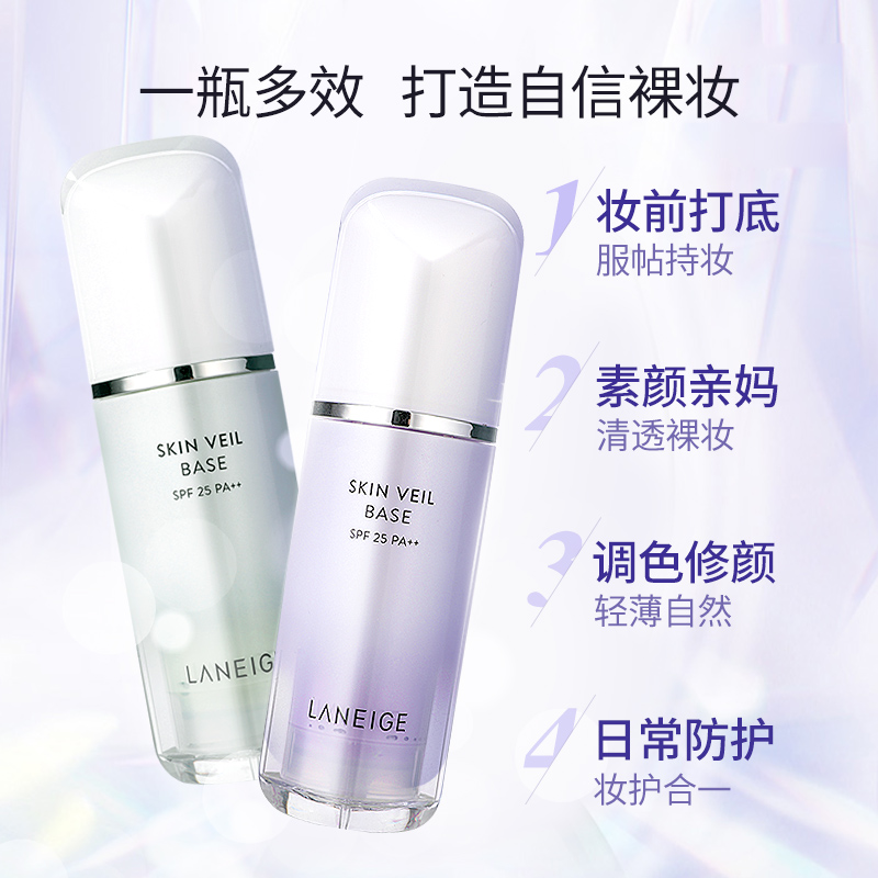 兰芝隔离雪纱丝柔紫色三合一妆前乳打底保湿 提亮紫色绿遮瑕防晒霜