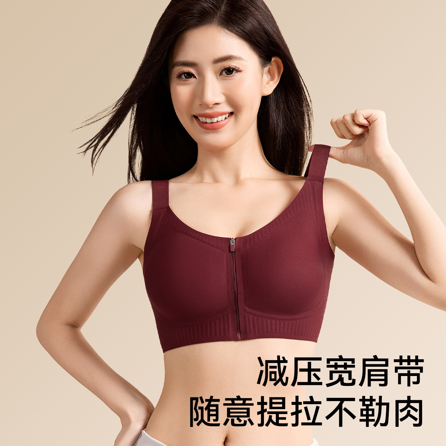 爆款 猫人红色内衣女大胸显小收副乳防下垂无钢圈大码 文胸2025新款