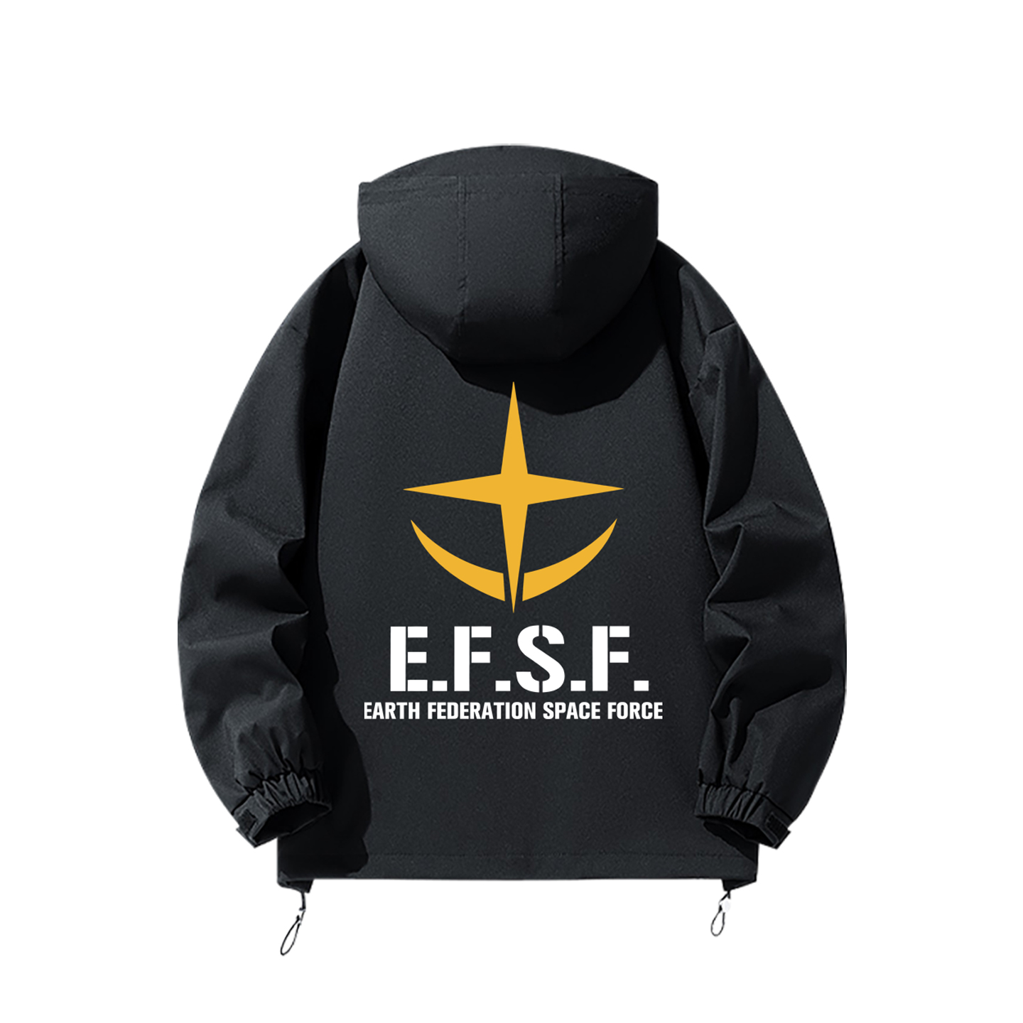 机动战士高达地球联邦宇宙军E.F.S.F标志夹克连帽外套黑色冲锋衣