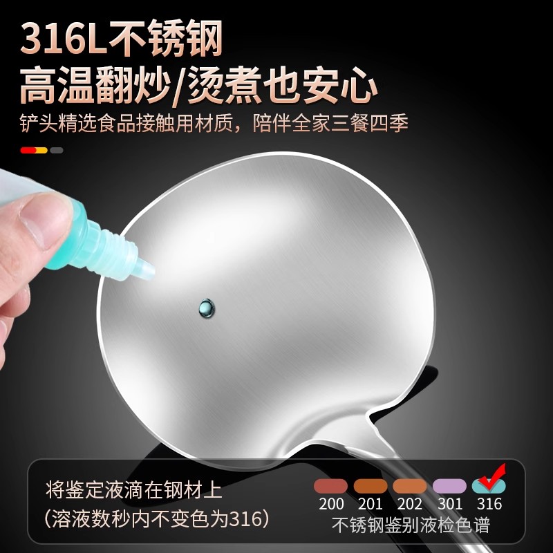 锅铲316不锈钢食品级蘑菇铲炒勺家用炒菜专用铲子长柄加厚炒菜勺
