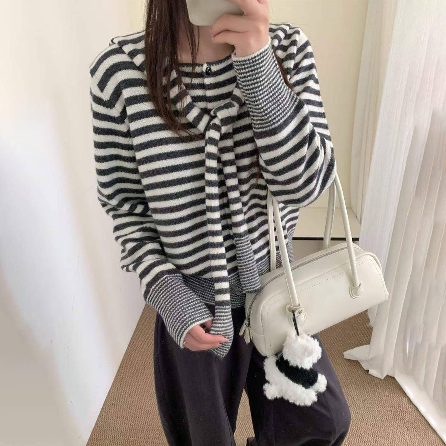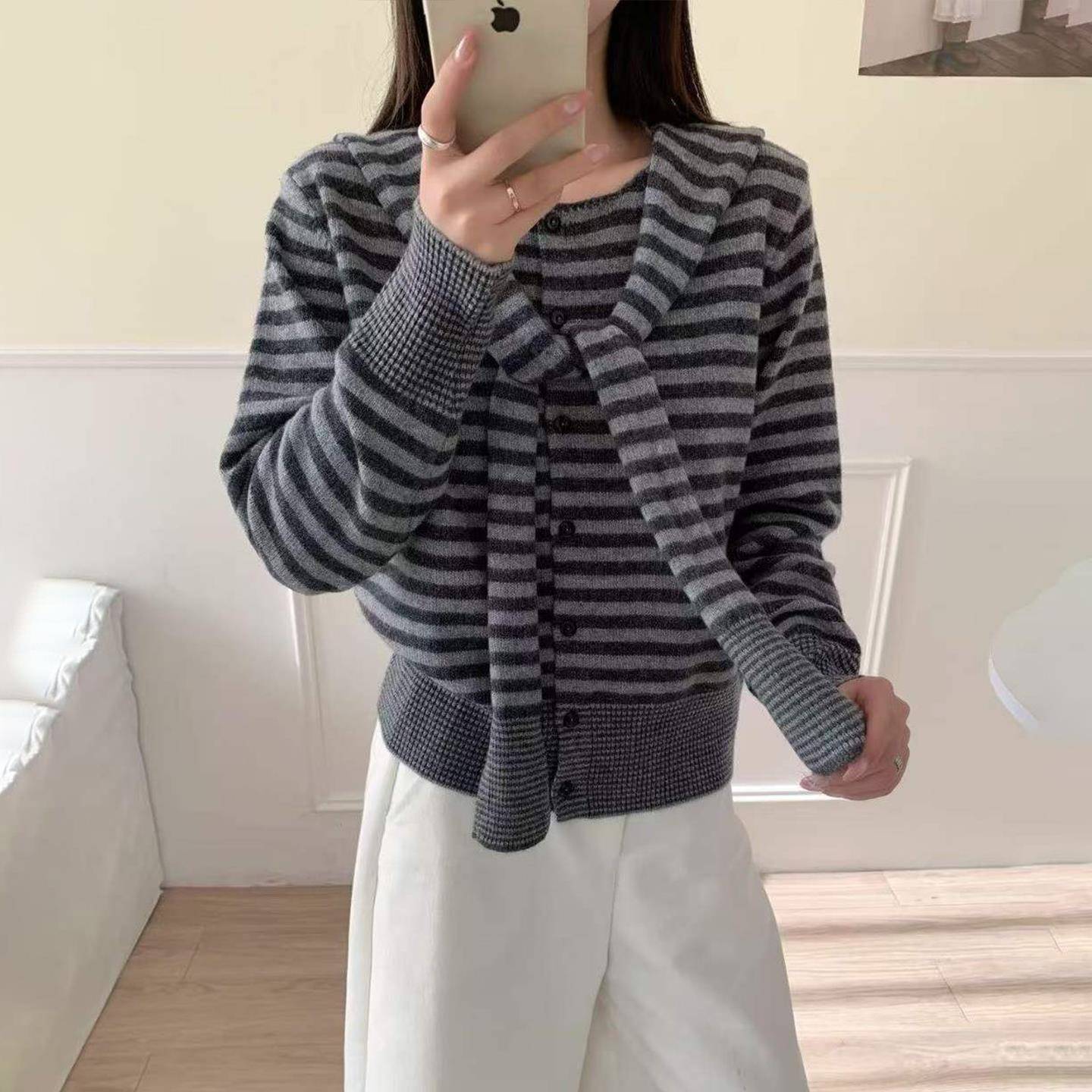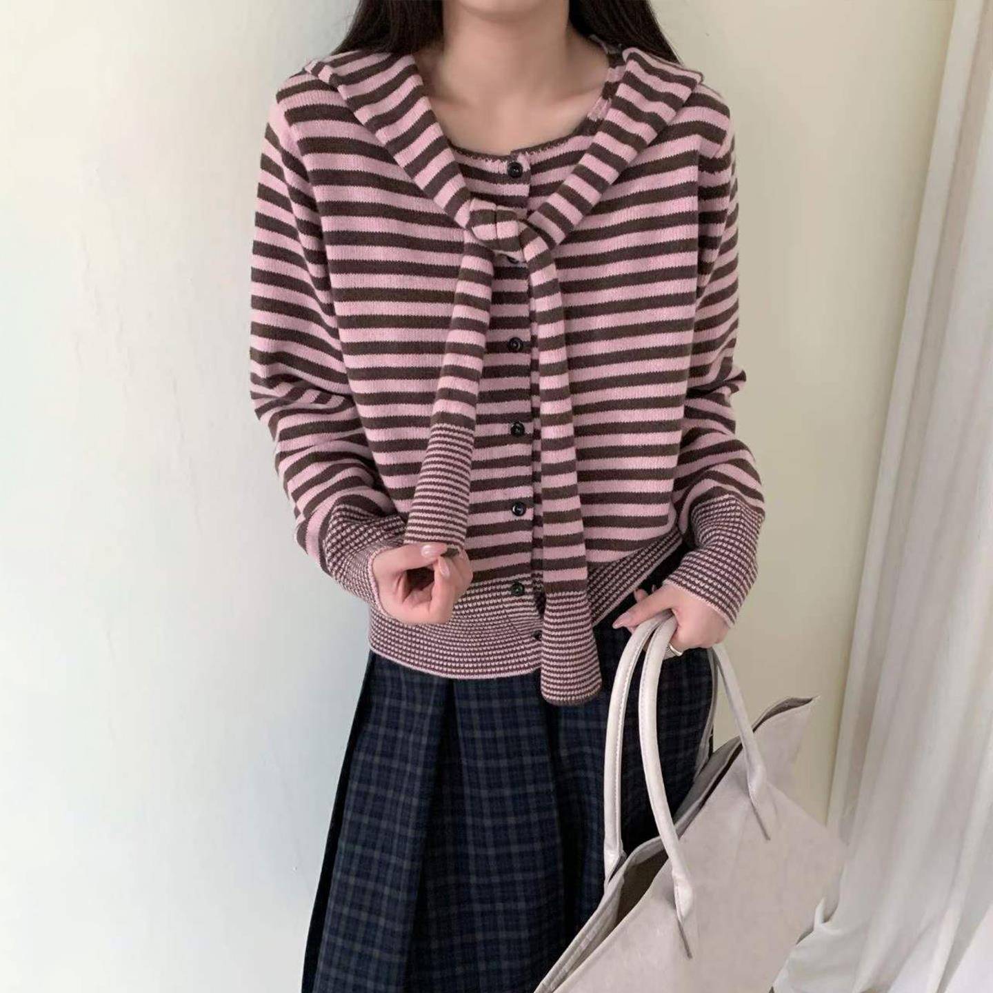 百搭毛衣外套带披肩上1014e 时尚 秋冬穿搭条纹针织开衫 女2025新款
