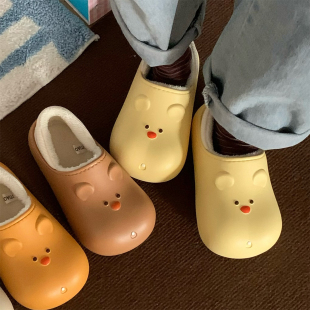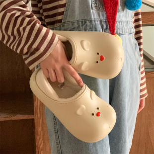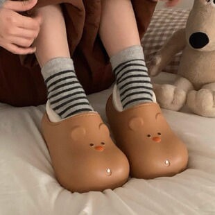 ins百搭防滑居家防水保暖棉鞋 冬季 女士 棉拖鞋 可爱小熊包跟月子鞋