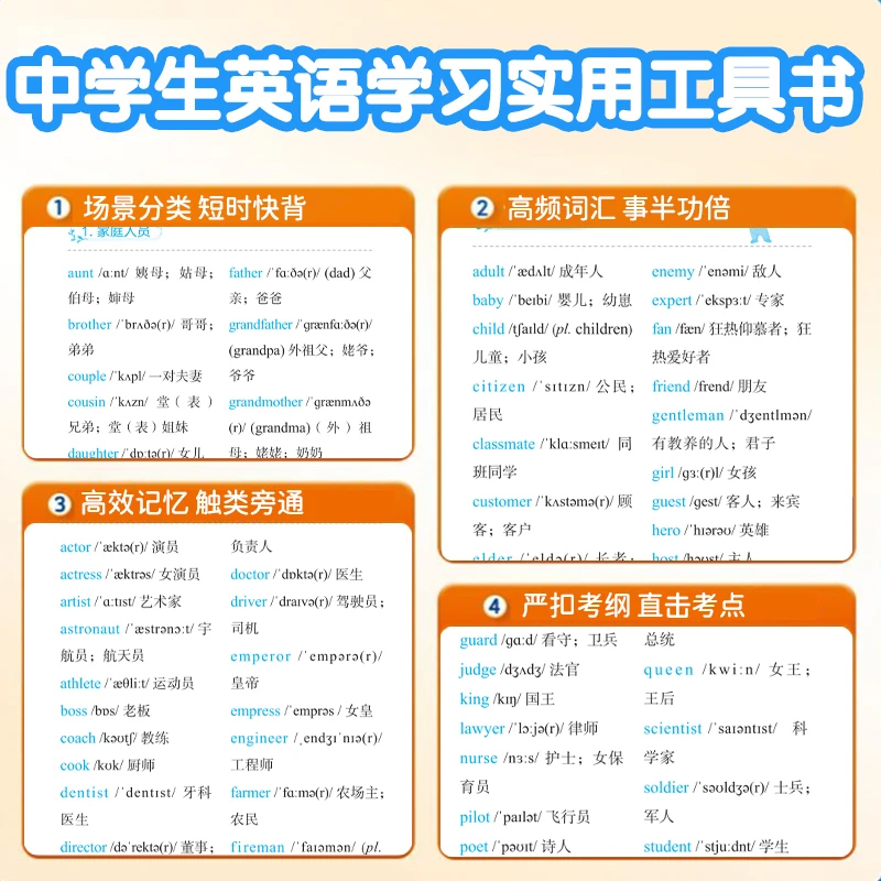 二三四五六七八年级英语单词携带袖 小学英语800词中考英语1600词单词速记口袋本 珍本便于翻阅中学初中英语单词词 抖音同款