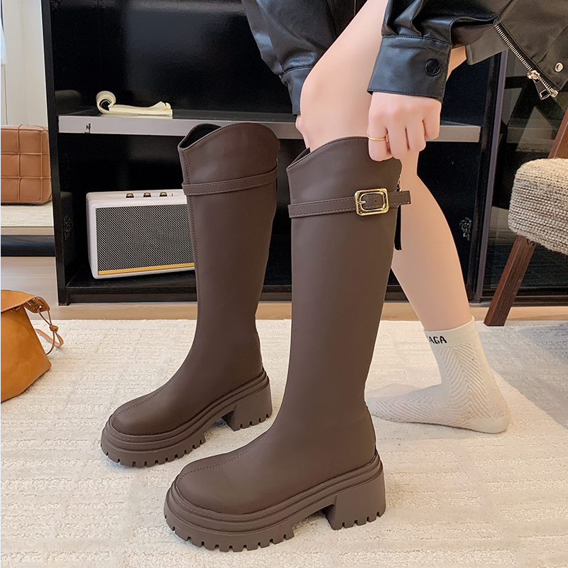 厚底增高7CM小个子不过膝长筒靴女粗跟2025新款 秋冬高筒骑士靴子