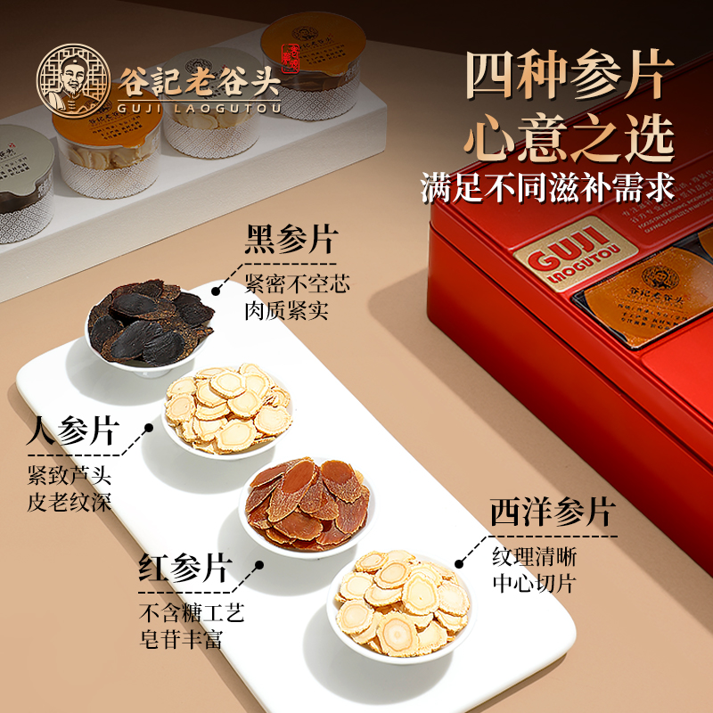 西洋参礼盒红参片黑参四参礼盒长白山人参切片送礼长辈高档