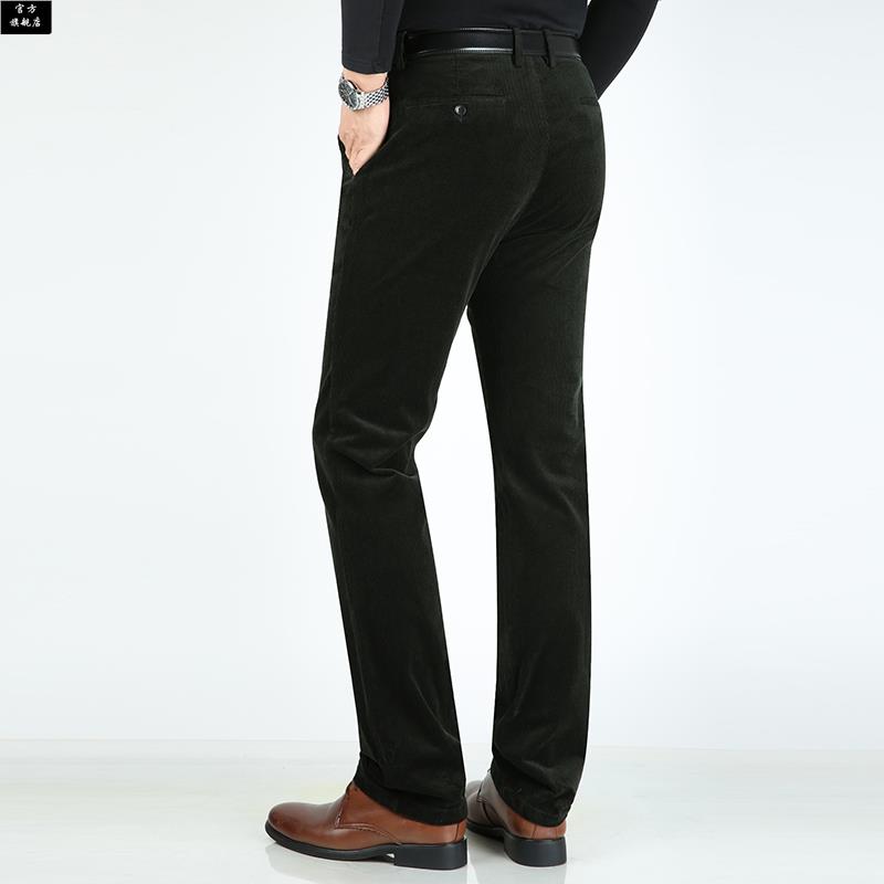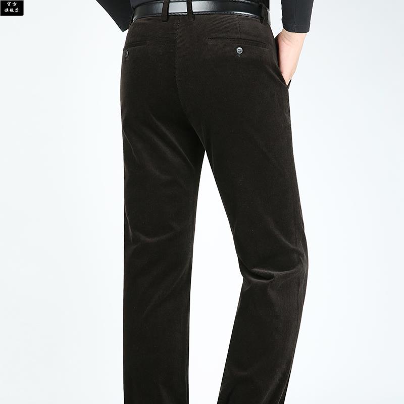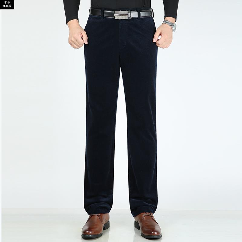 爸爸显高加 子中年毛呢西裤 保罗官方中老年灯芯绒男裤 直筒宽松长裤
