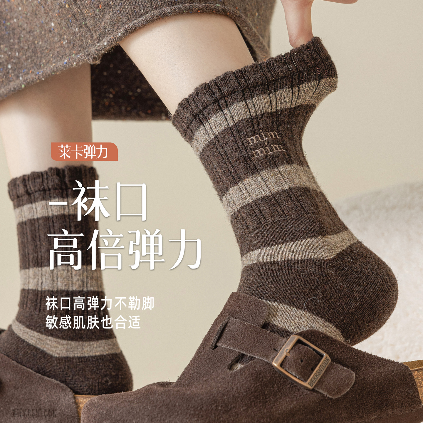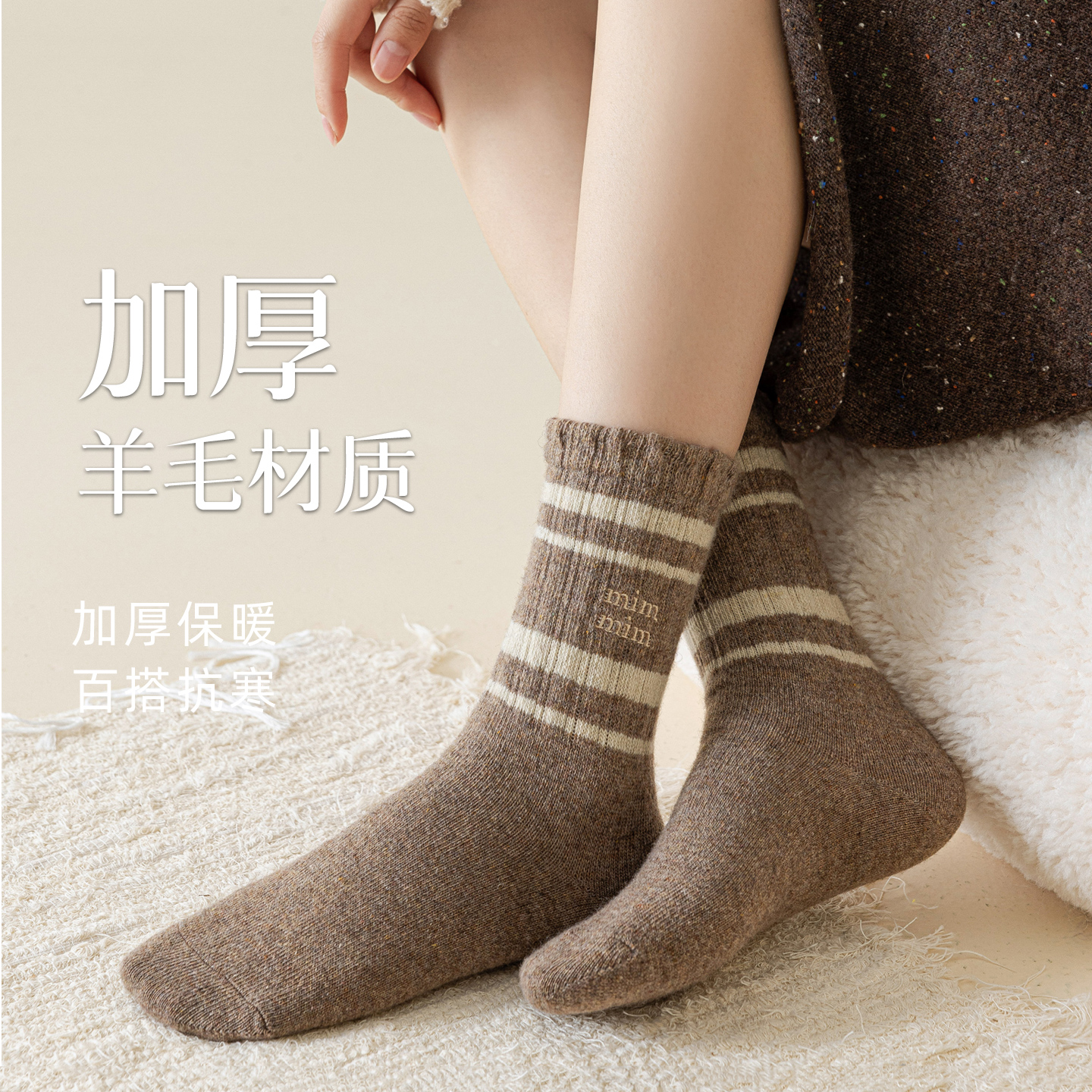 羊毛袜子女款 美利奴羊绒中筒袜厚保暖月子棉袜冬天女士长袜 秋冬季