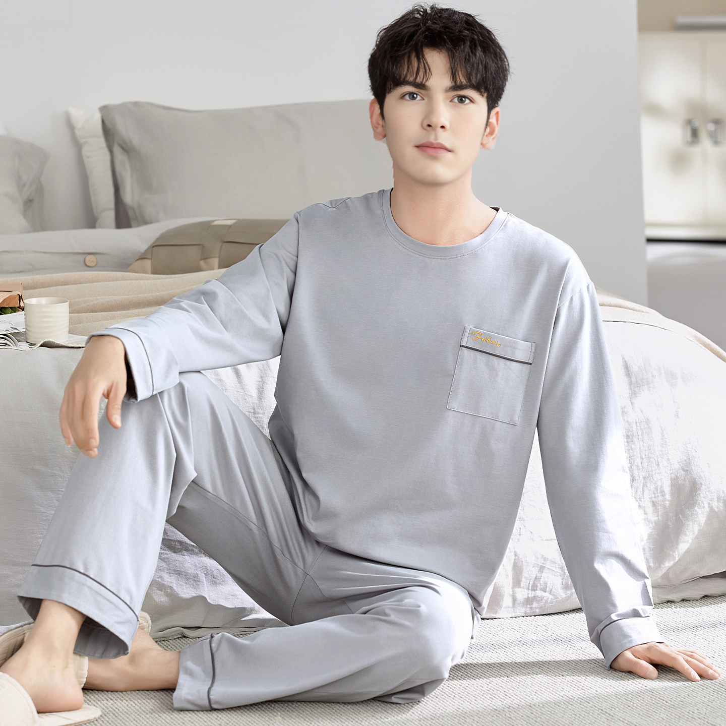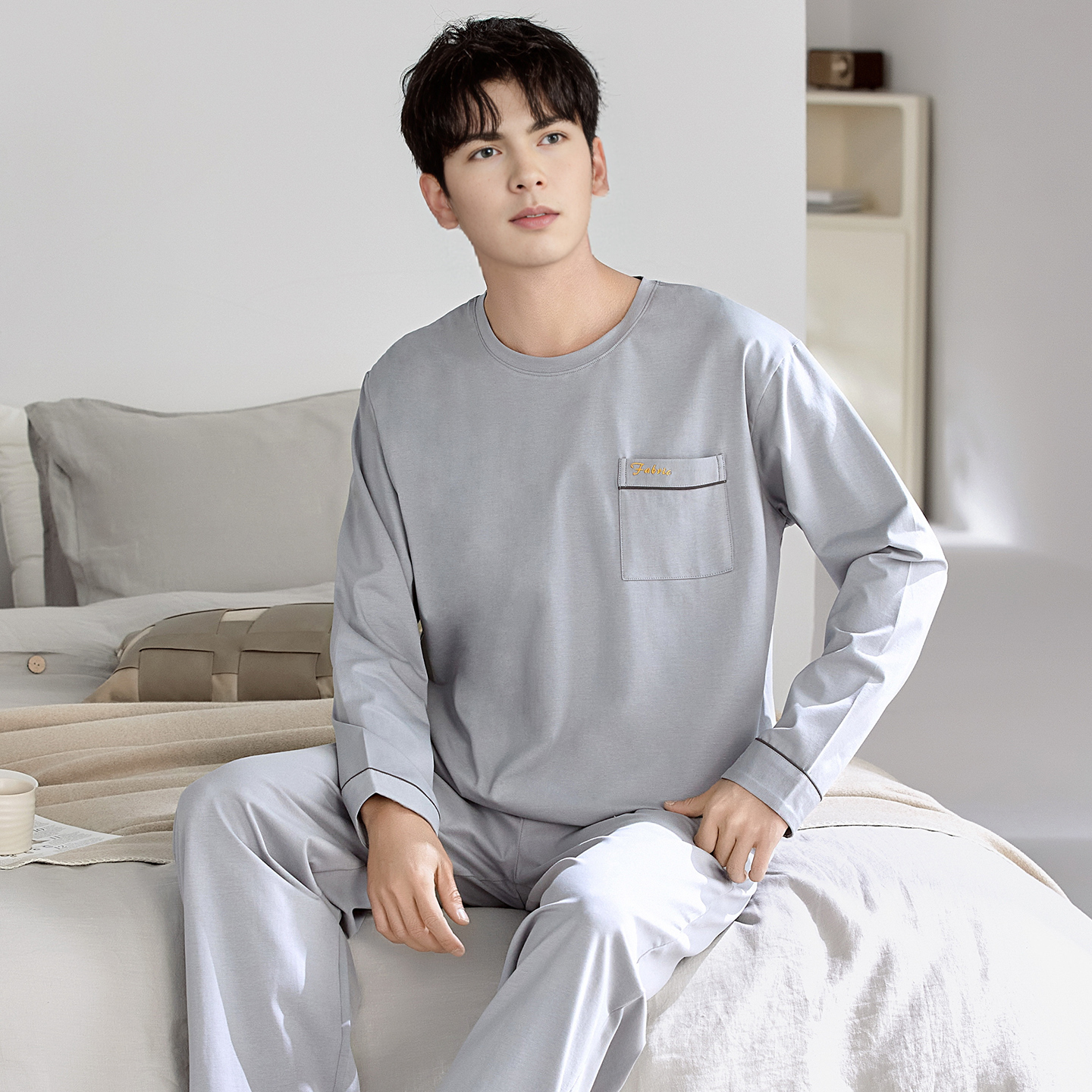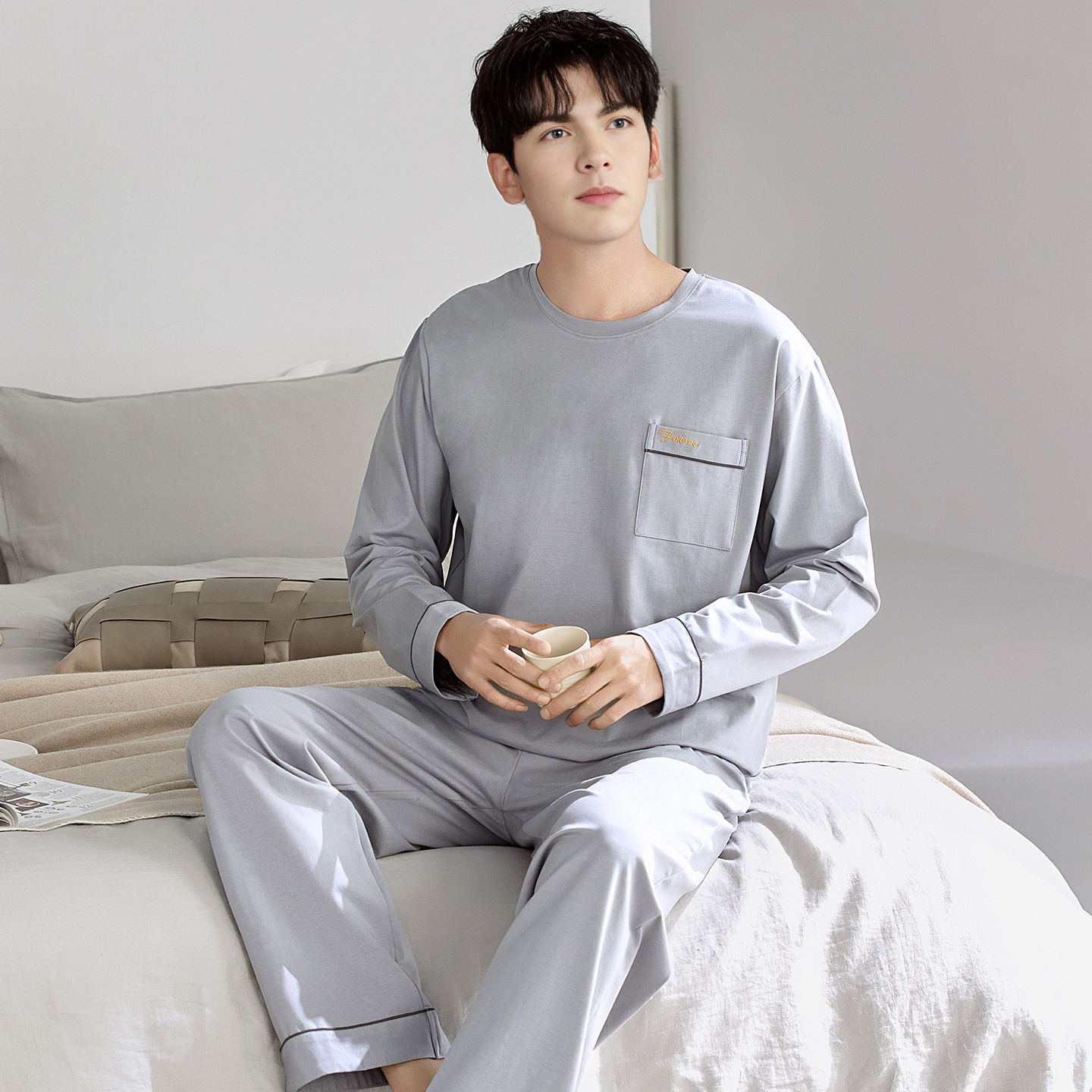 新款 红豆居家男士 柔软春秋季 家居服套装 简约青年 睡衣纯棉格纹长袖