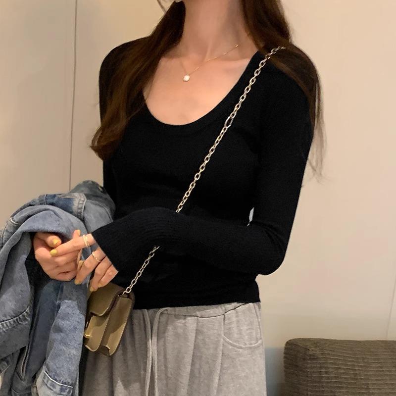 甜辣针织上衣感长袖 女冬2025修身 内搭1013c U领漏锁骨打底衫 冬季