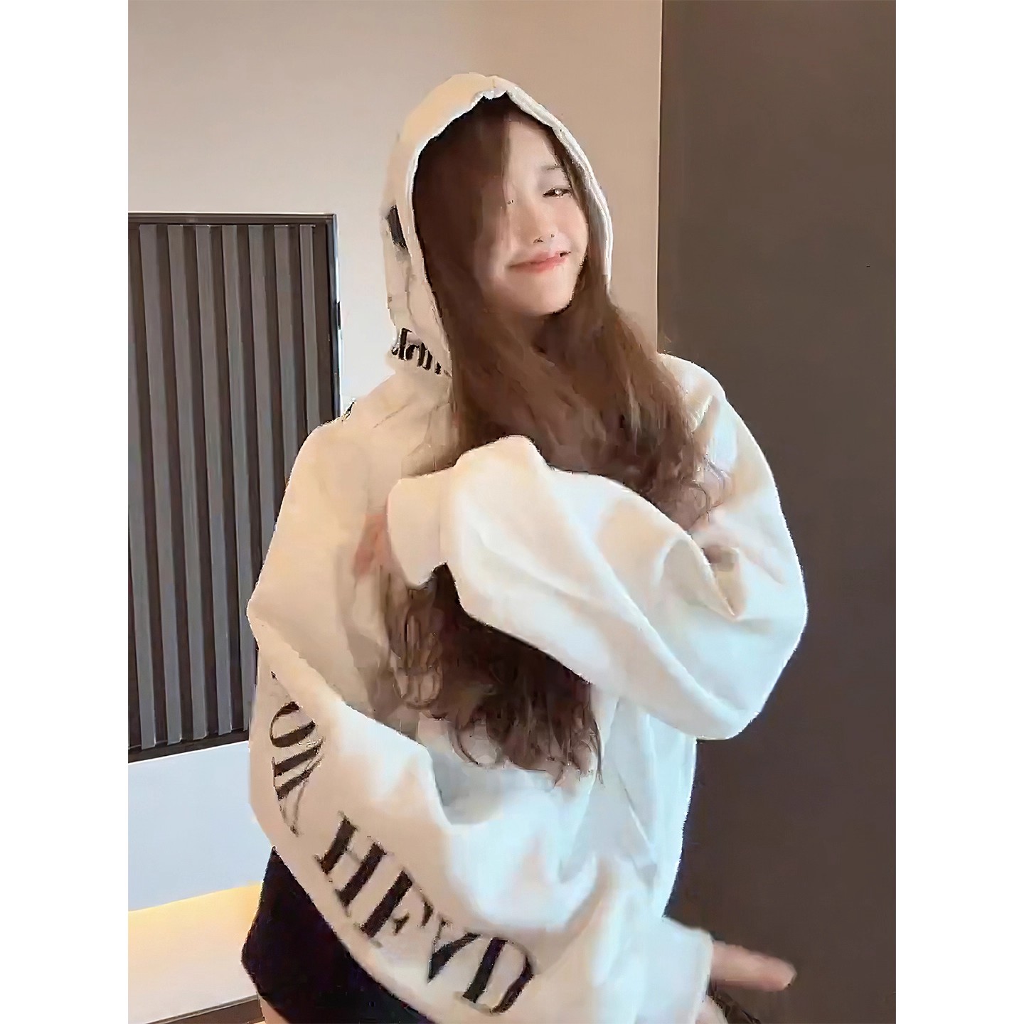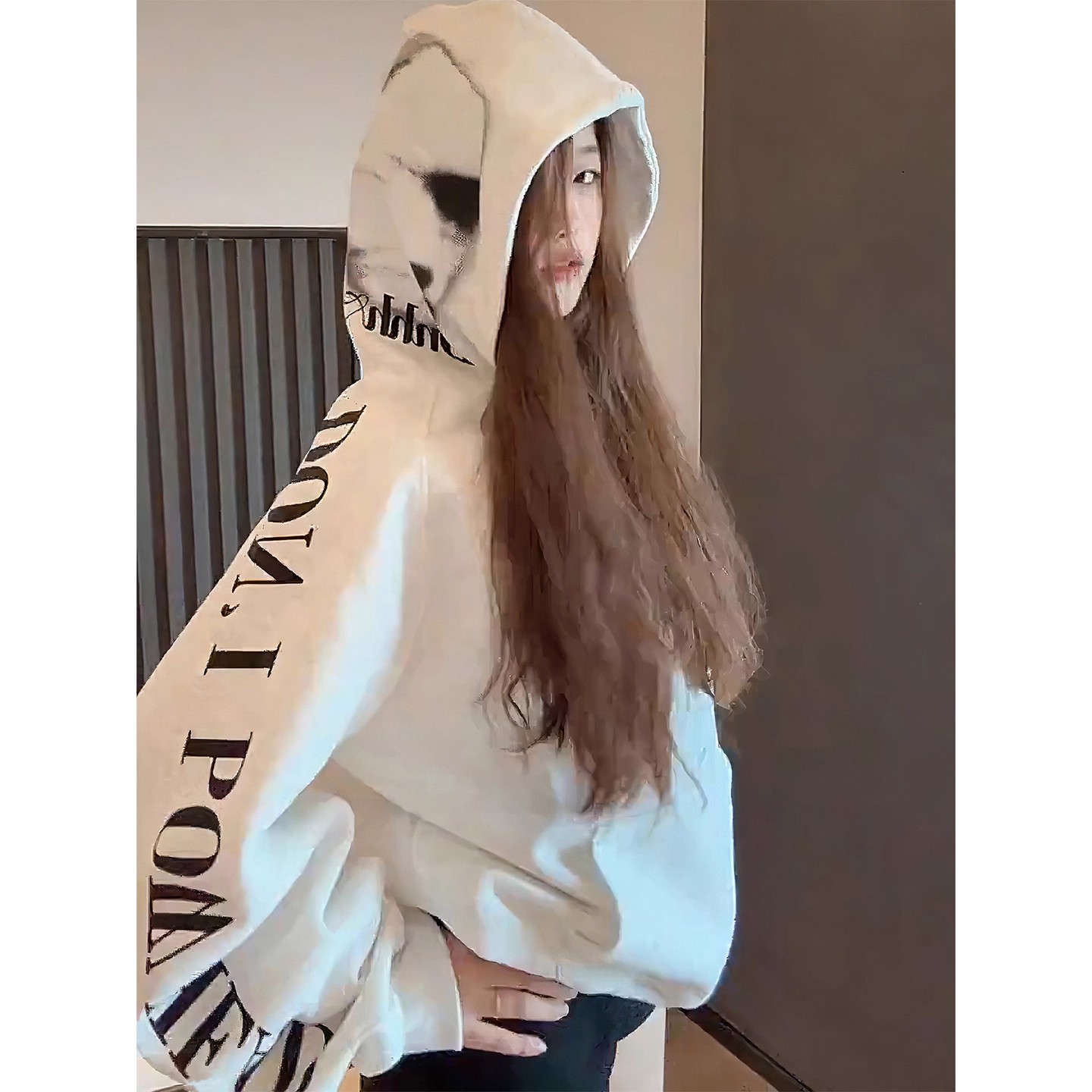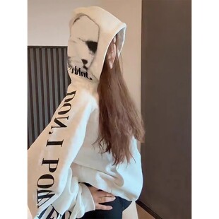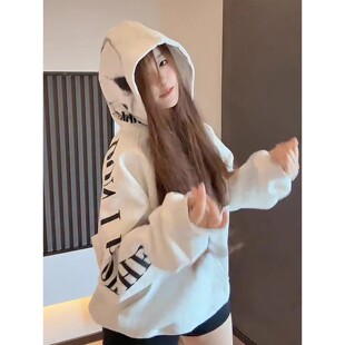 美式 高街字母印花连帽卫衣女秋冬加绒加厚宽松潮牌学院风情侣外套