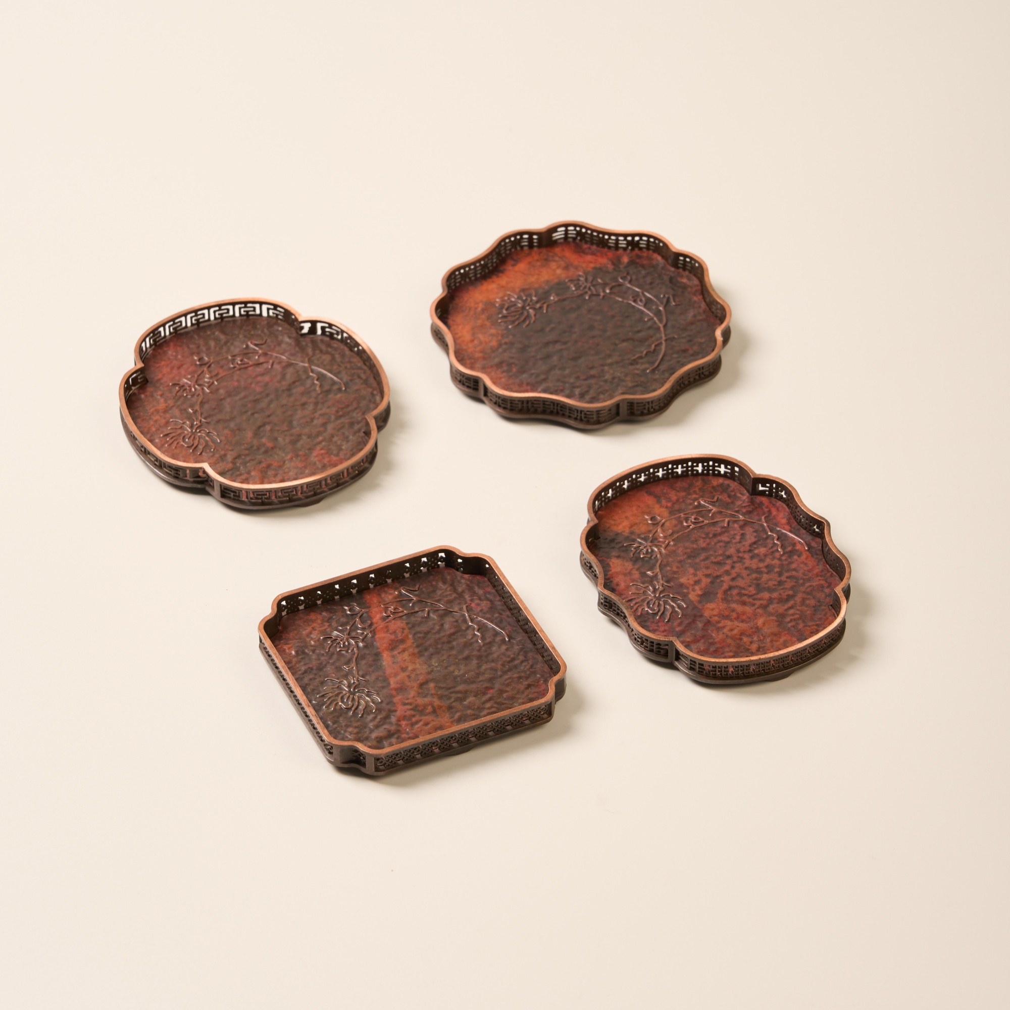 盈德堂紫铜创意花边壶承办公室家用纯铜杯垫轻奢简约大气小号茶托