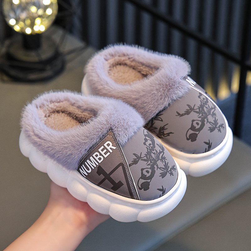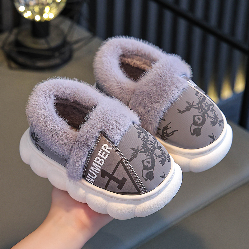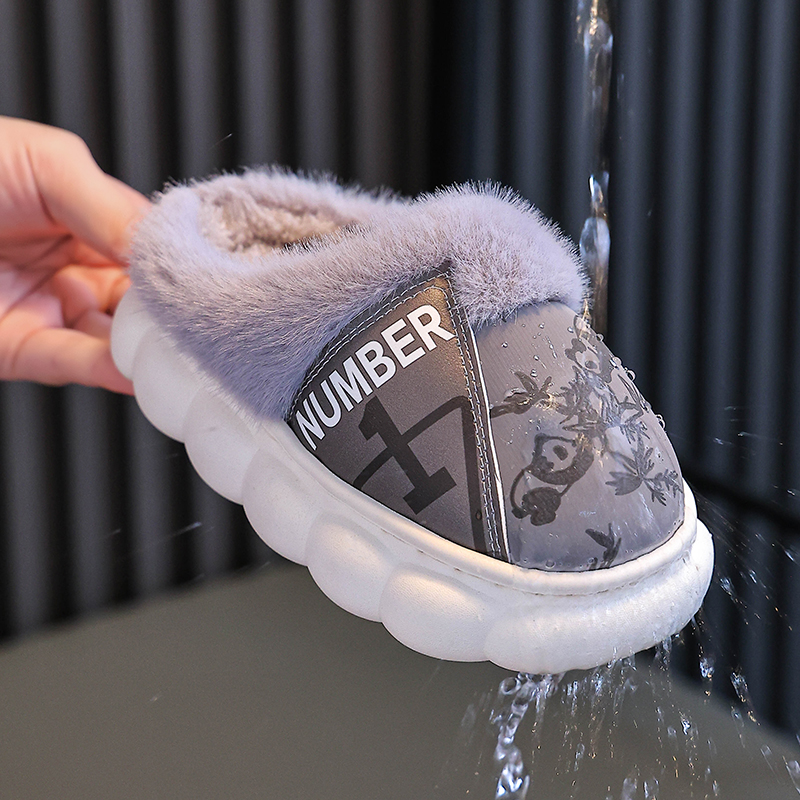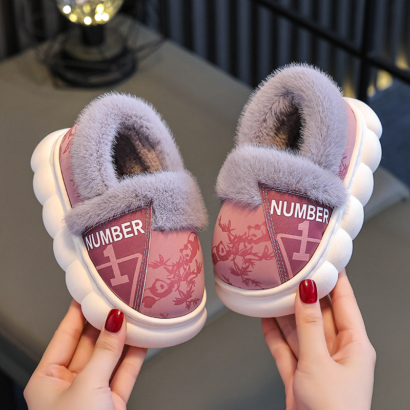 居家加绒加厚pu皮防滑男女童棉鞋 包跟冬季 亲子成人棉拖鞋 2025新款