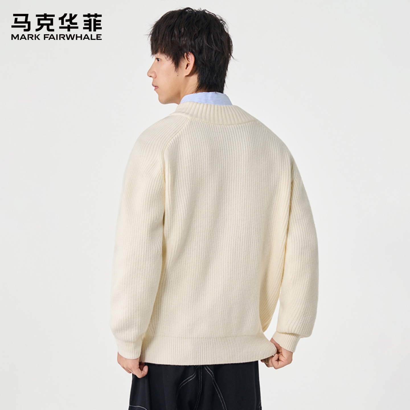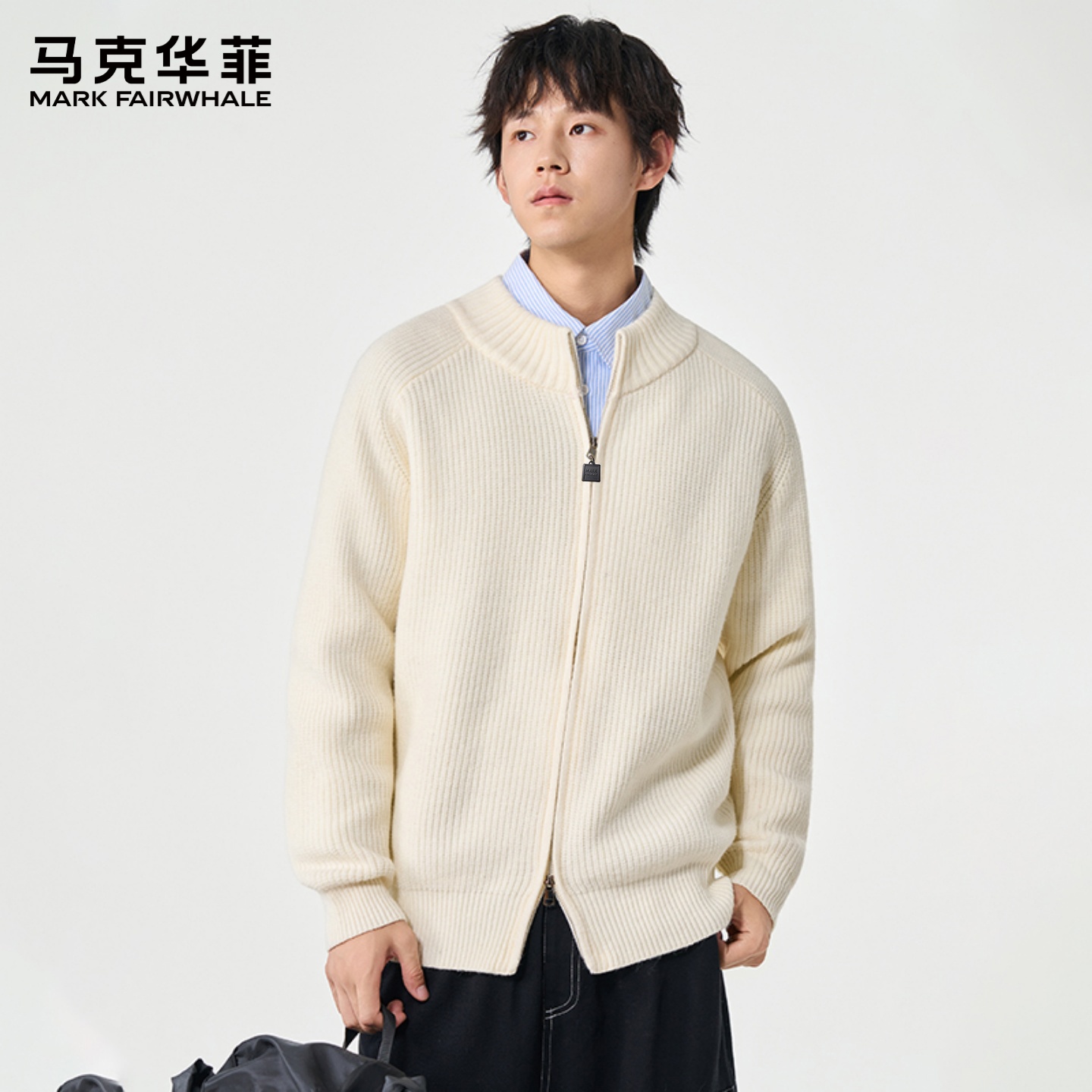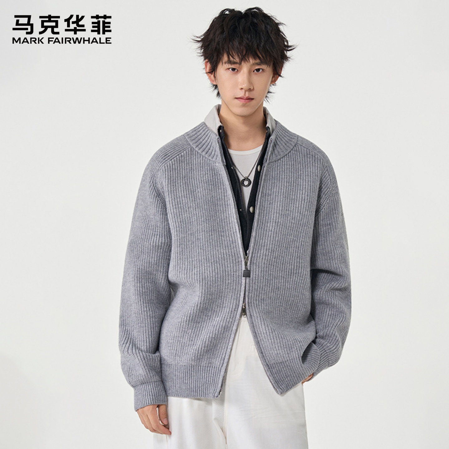 休闲针织衫 CHINISM赤尘 美式 毛衣男冬季 外套 灰色简约立领拉链开衫