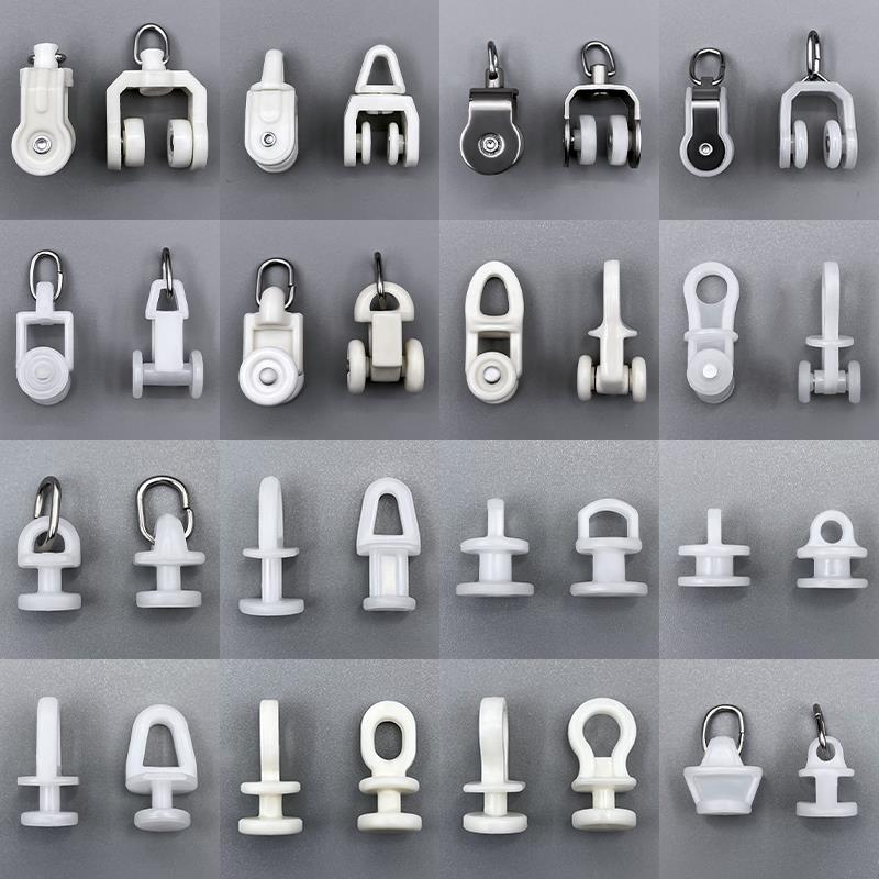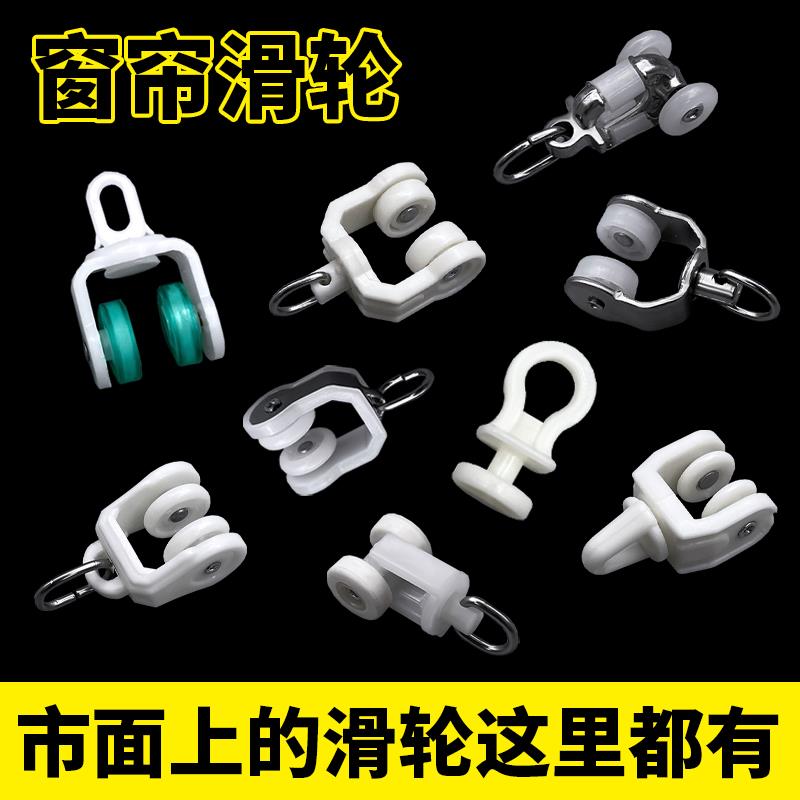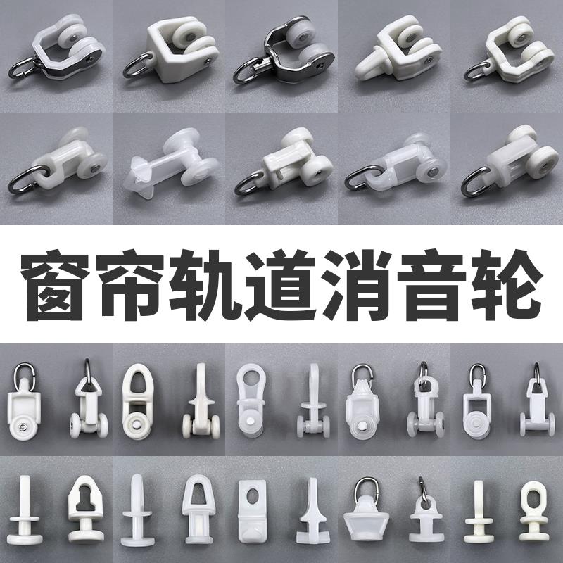 窗帘轨道滑轮挂钩配件滚轮门帘扣环弯轨跑道滑轨导轨轮子免打孔