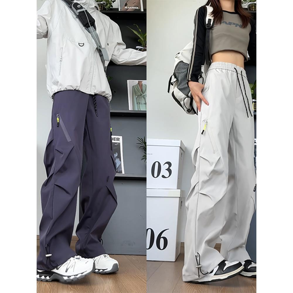 机能伞兵冲锋裤 裤 女款 微喇工装 2025春秋宽松休闲褶皱登山大码 美式