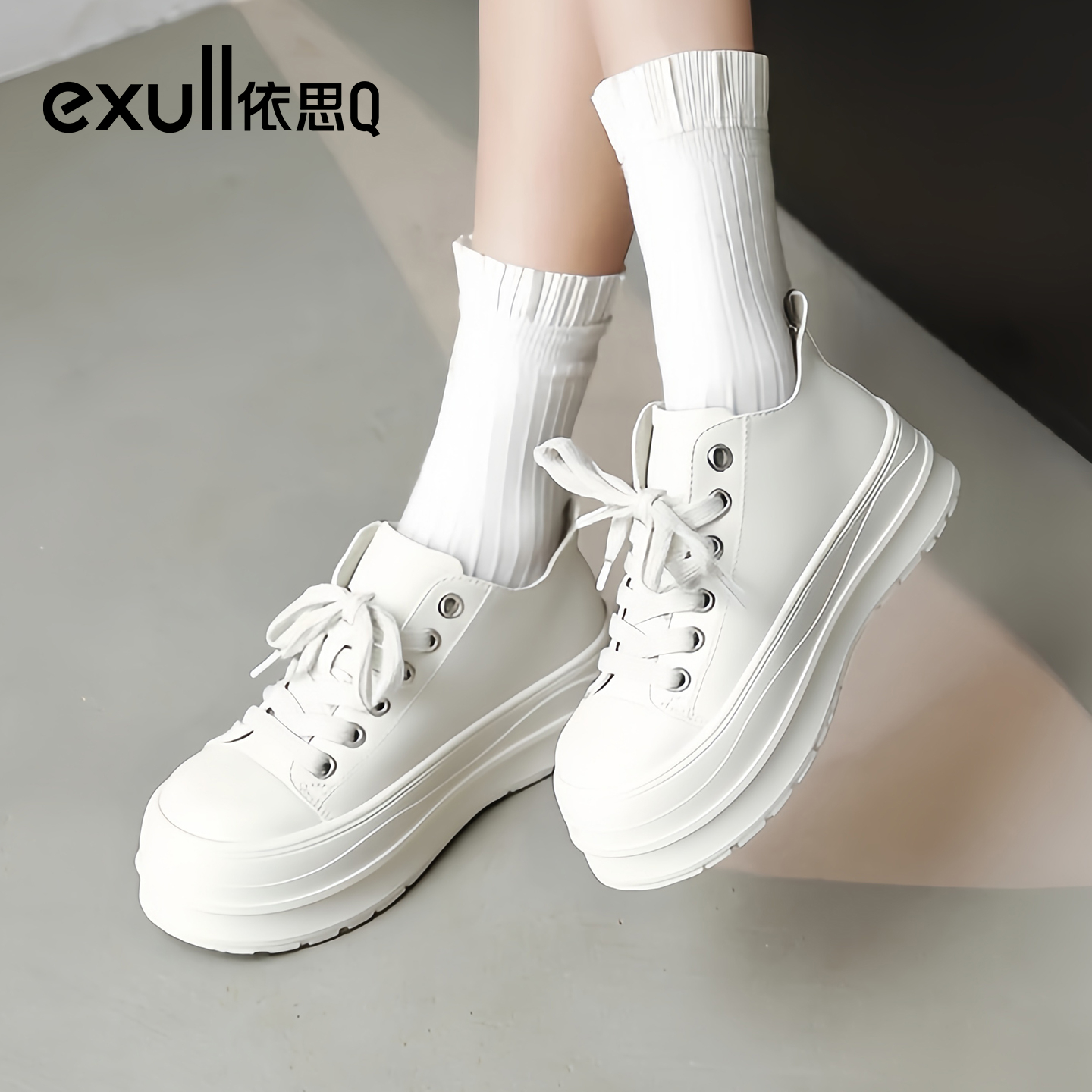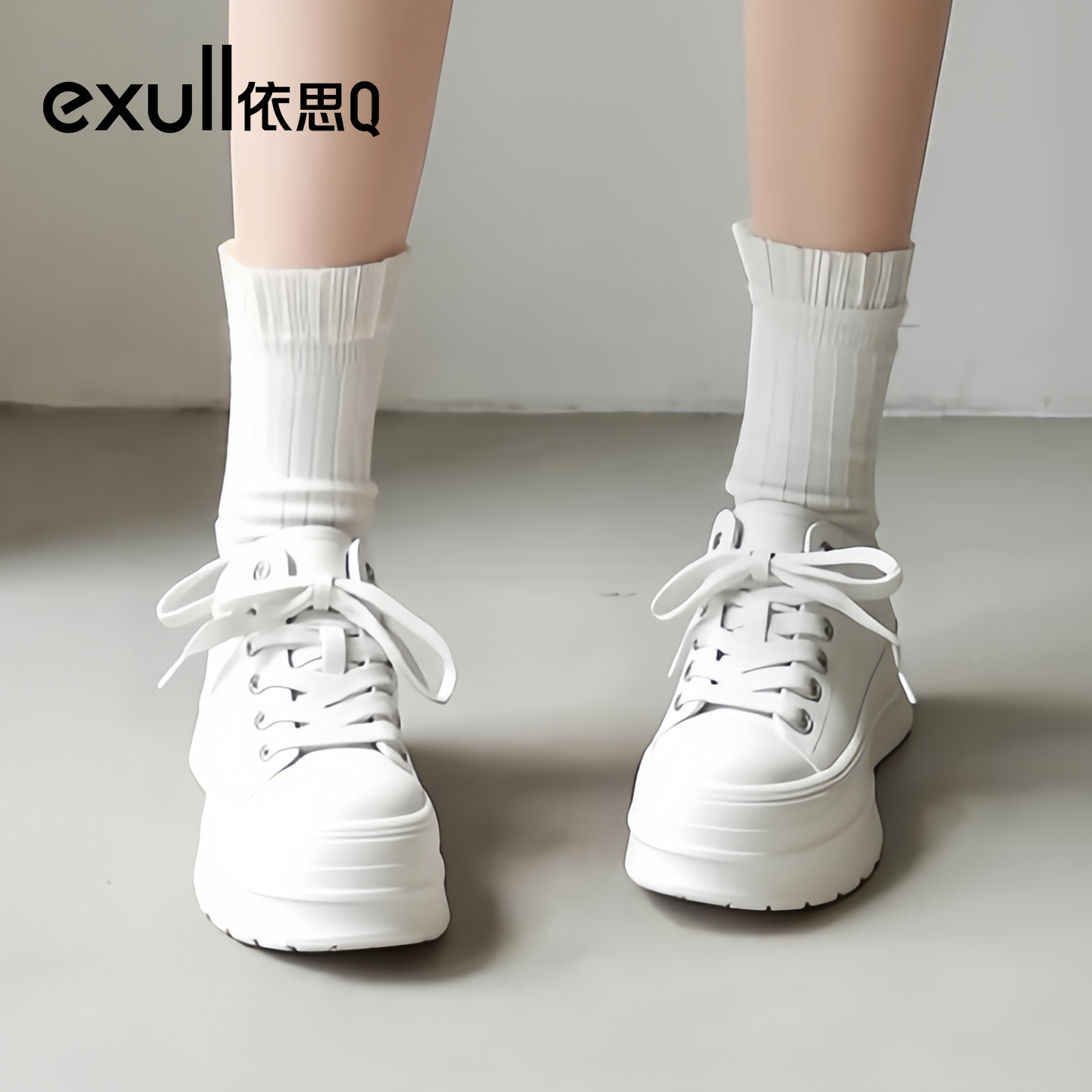百搭休闲运动贝壳头小白鞋 exull 女鞋 厚底高帮板鞋 依思Q2025秋季