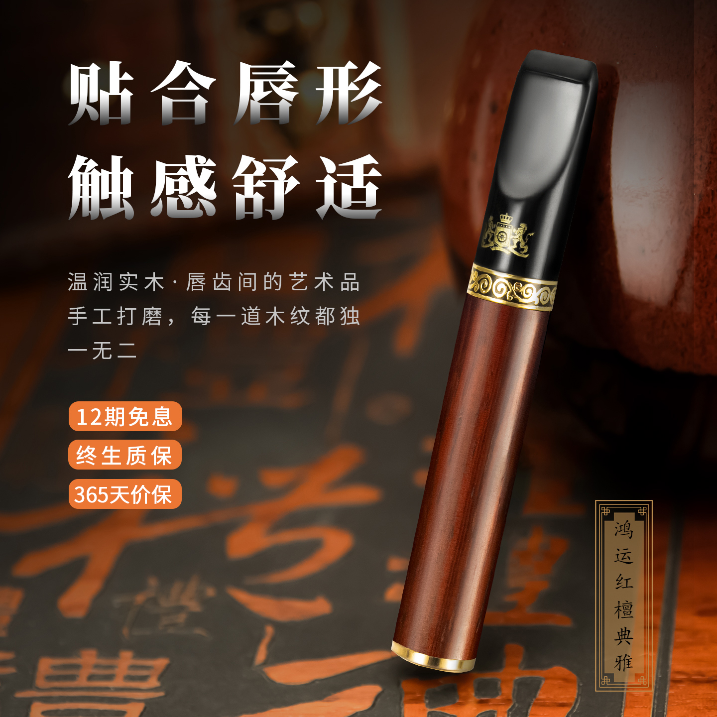 英国大船黄铜烟嘴过滤器粗中细三用高端红檀木循环可清洗过滤嘴男