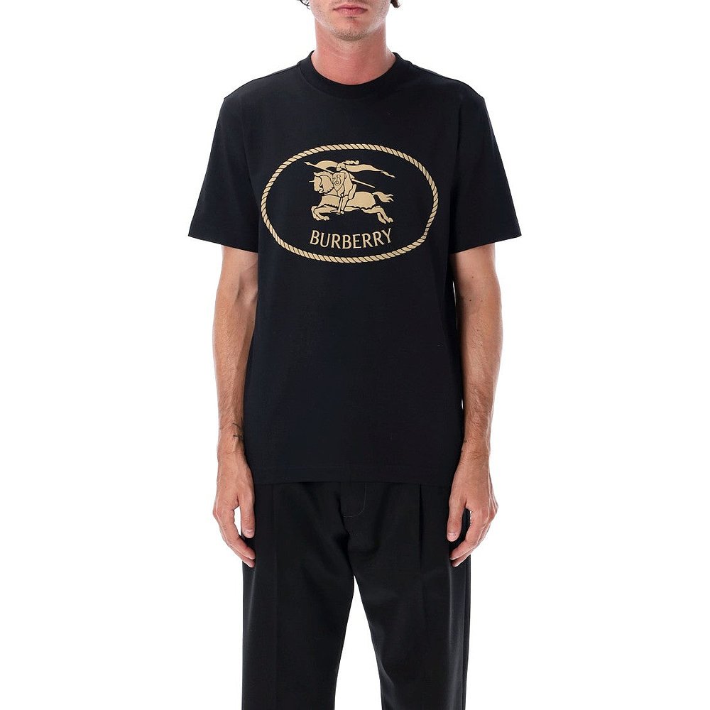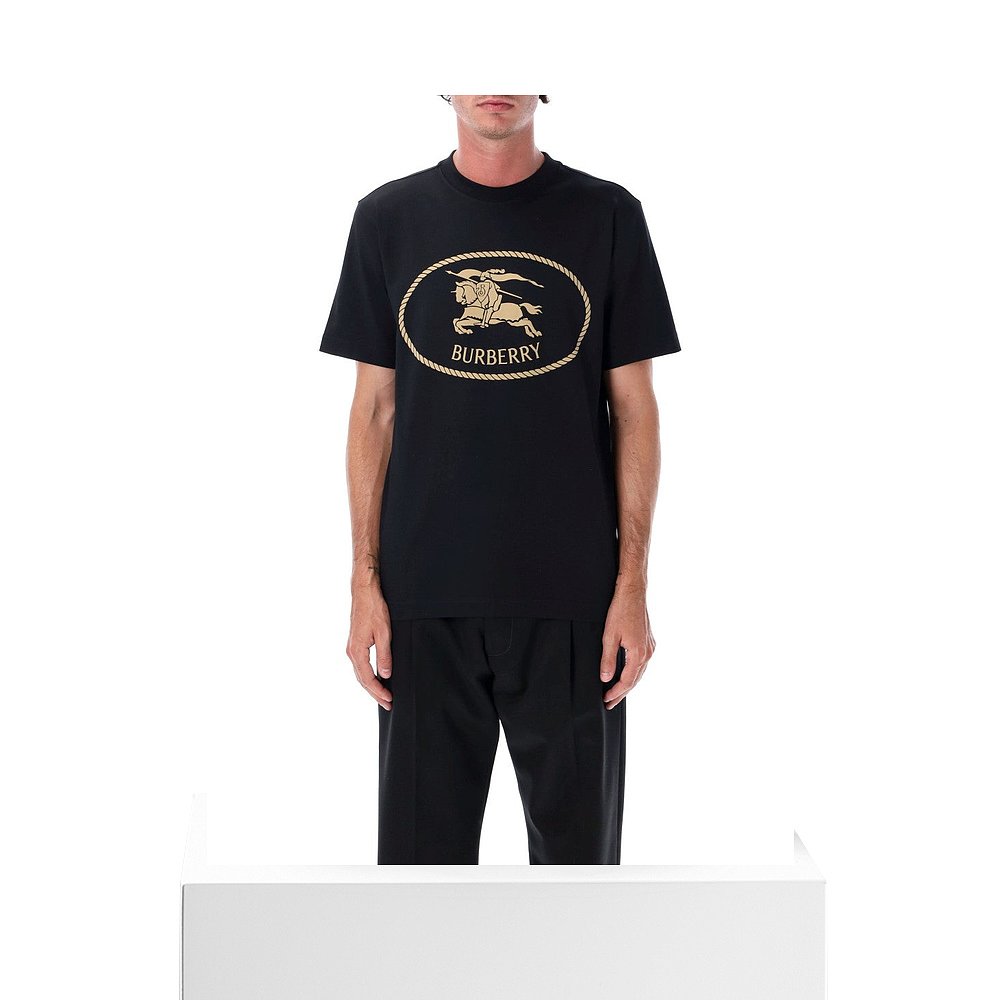 Black Shirt With 美国奥莱 自营burberryShort Horse Sleeved