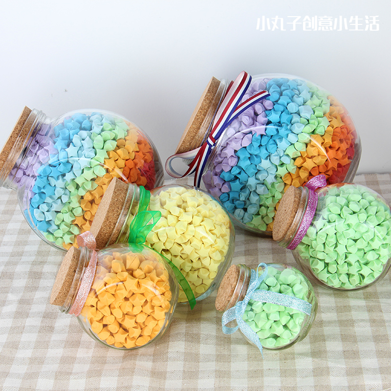 999 520 1314 折纸星星成品幸运星星瓶diy透明可装 玻璃瓶子木塞装