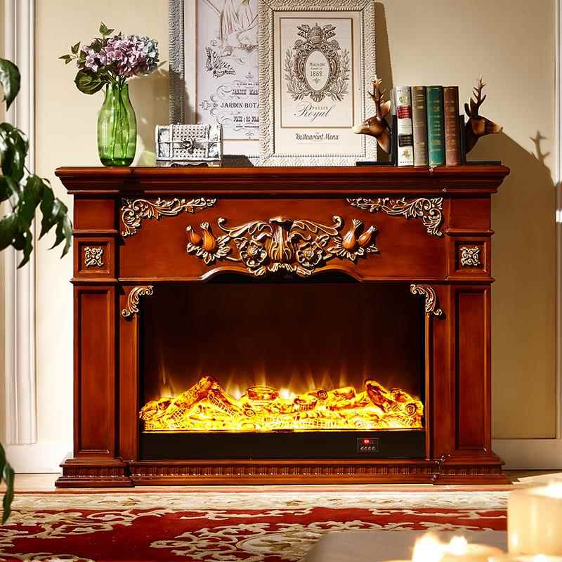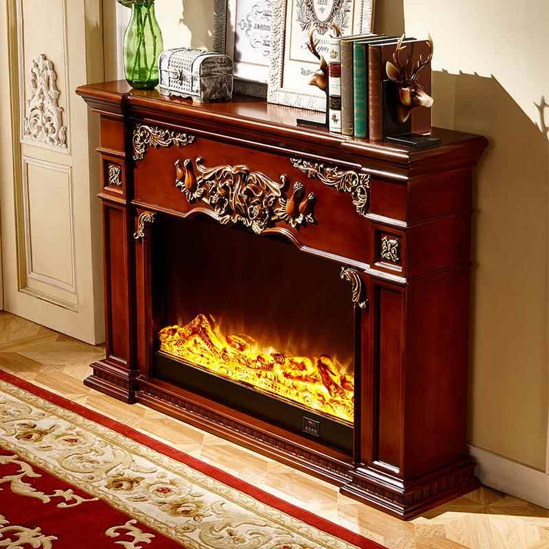 别墅定制实木欧式 饰柜法式 复古1米仿真火壁炉柜子 成品壁炉装 美式