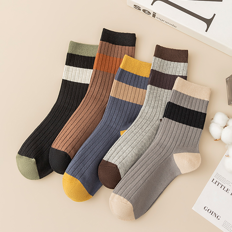 男袜子 拼色系纯棉男袜抗起球透气吸汗2025爆款 男士 双针袜子秋冬款