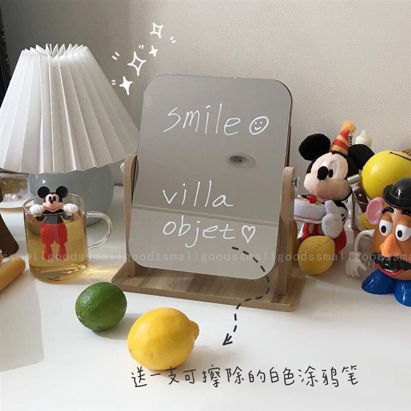 ins简约木质镜子旋转简约桌面化妆镜台式 宿生舍学镜子