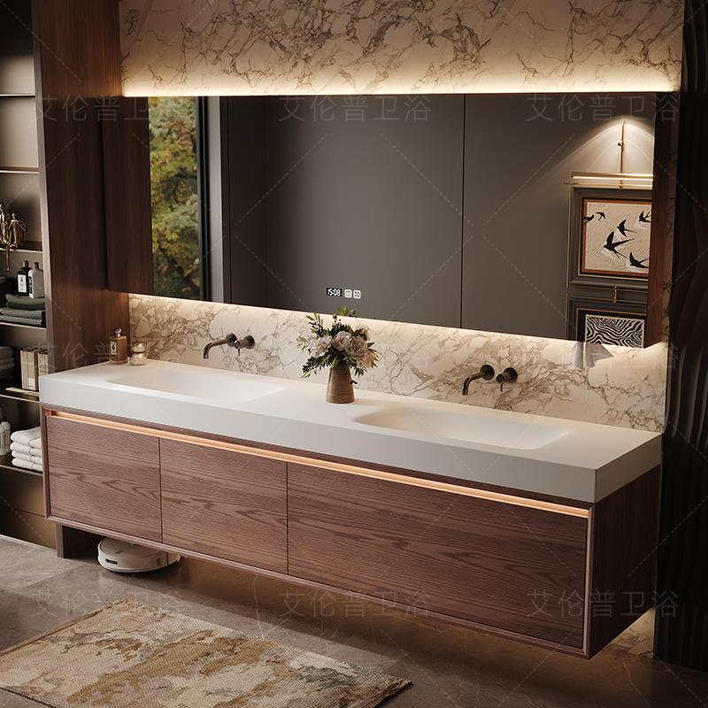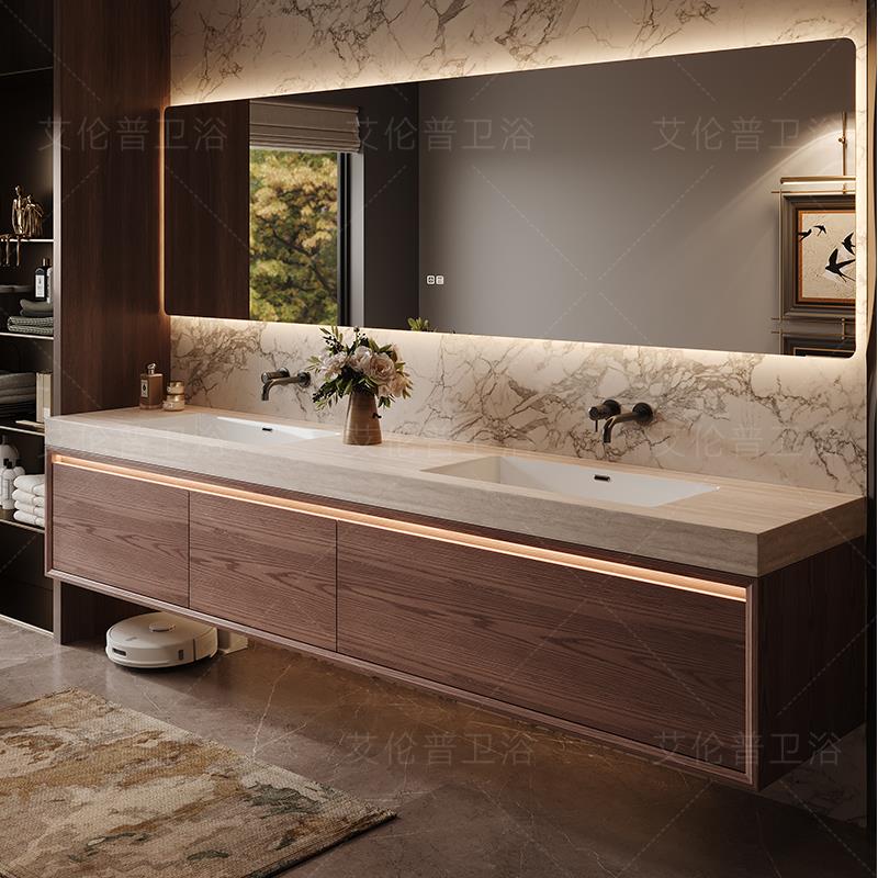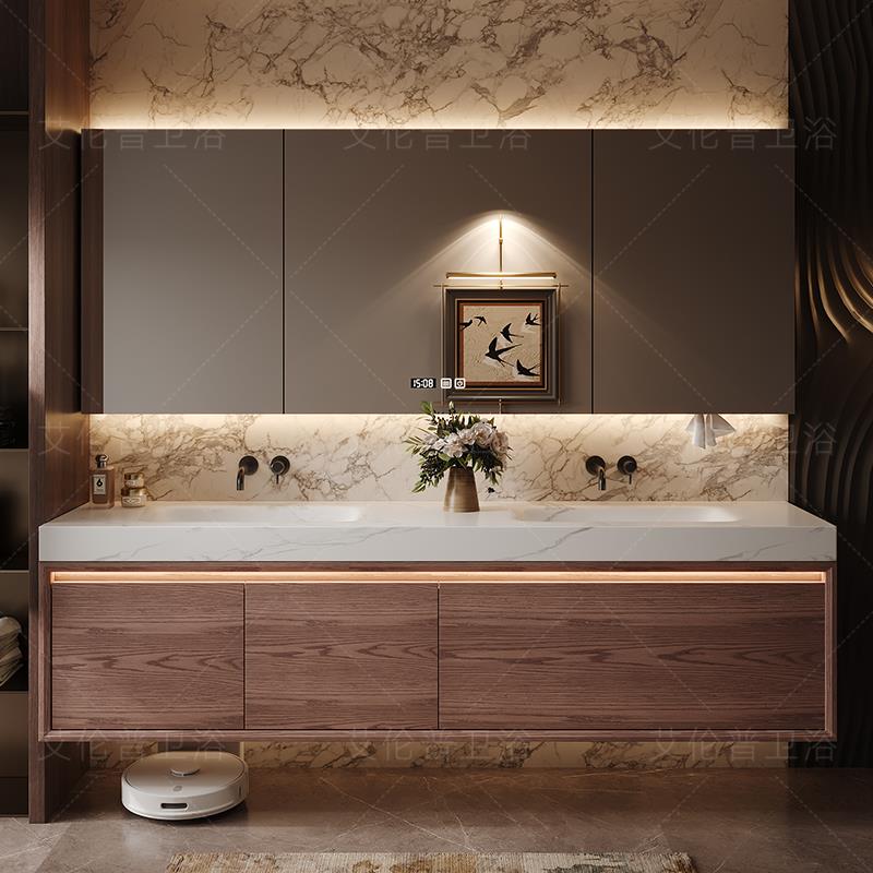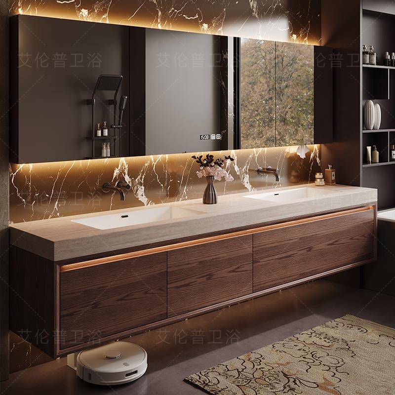 中古风浴室柜组合红橡木2025新款 岩板热弯一体盆洗漱台洗手洗脸盆