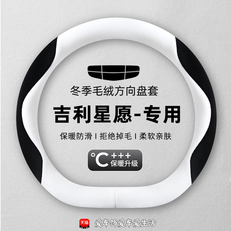 适用吉利星愿方向盘套冬季 饰用品毛绒保暖防滑吸汗汽车把套 车内装