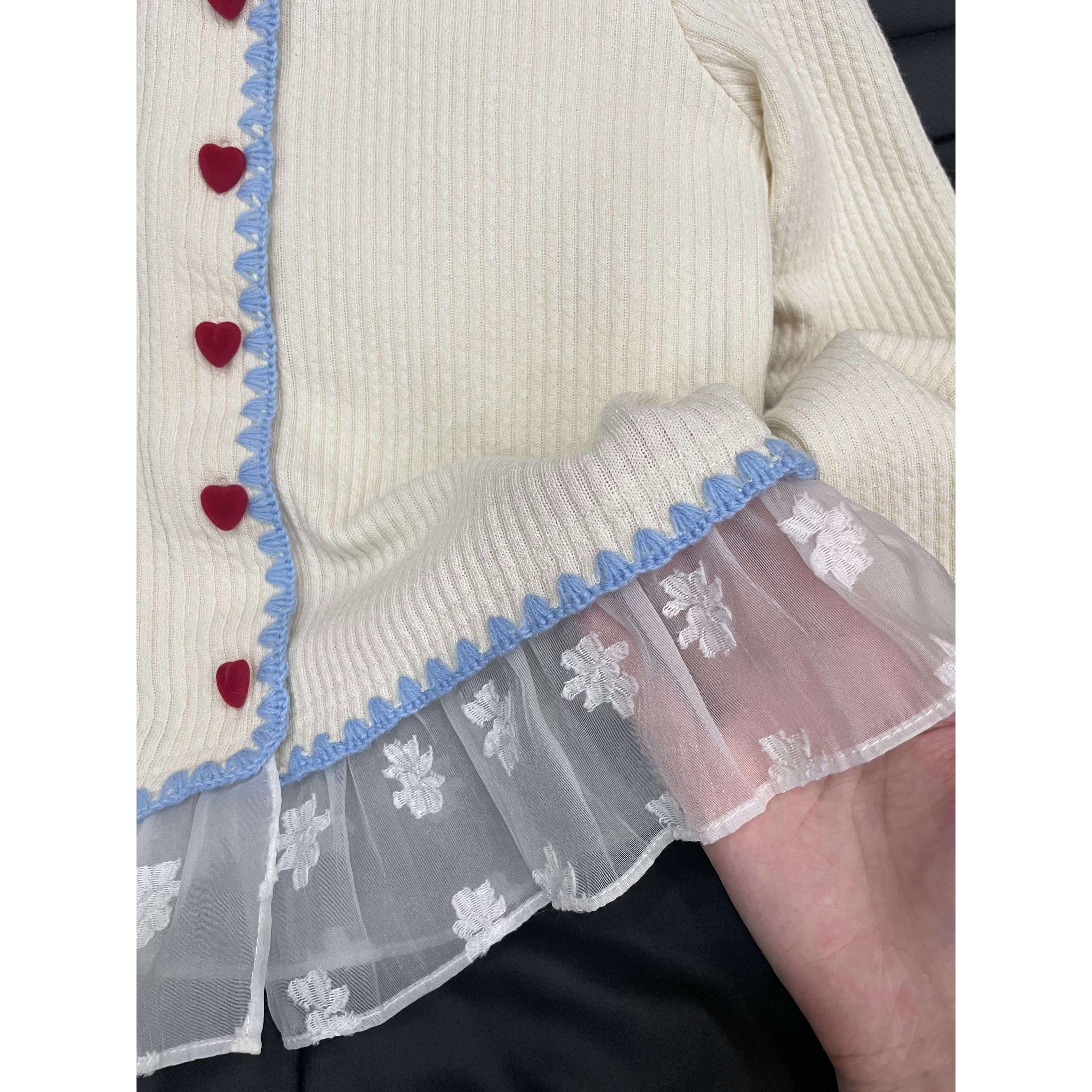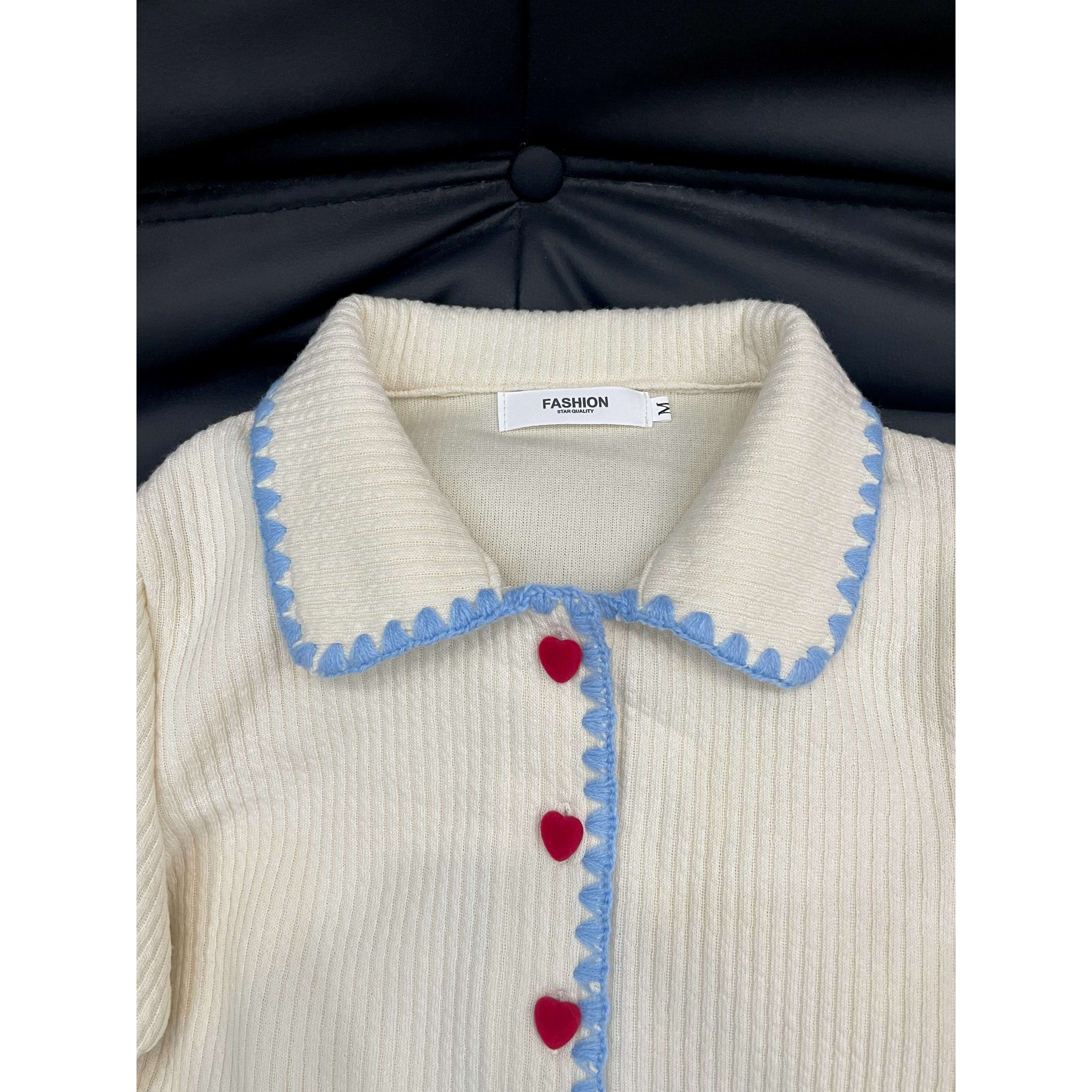 韩系慵懒温柔风娃娃领针织开衫 外套女秋冬内搭爱心扣软糯毛衣上衣