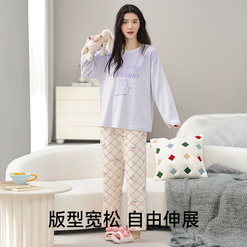 休闲宽松2025新款 春秋季 全棉家居服 套装 名创优品睡衣女士纯棉长袖