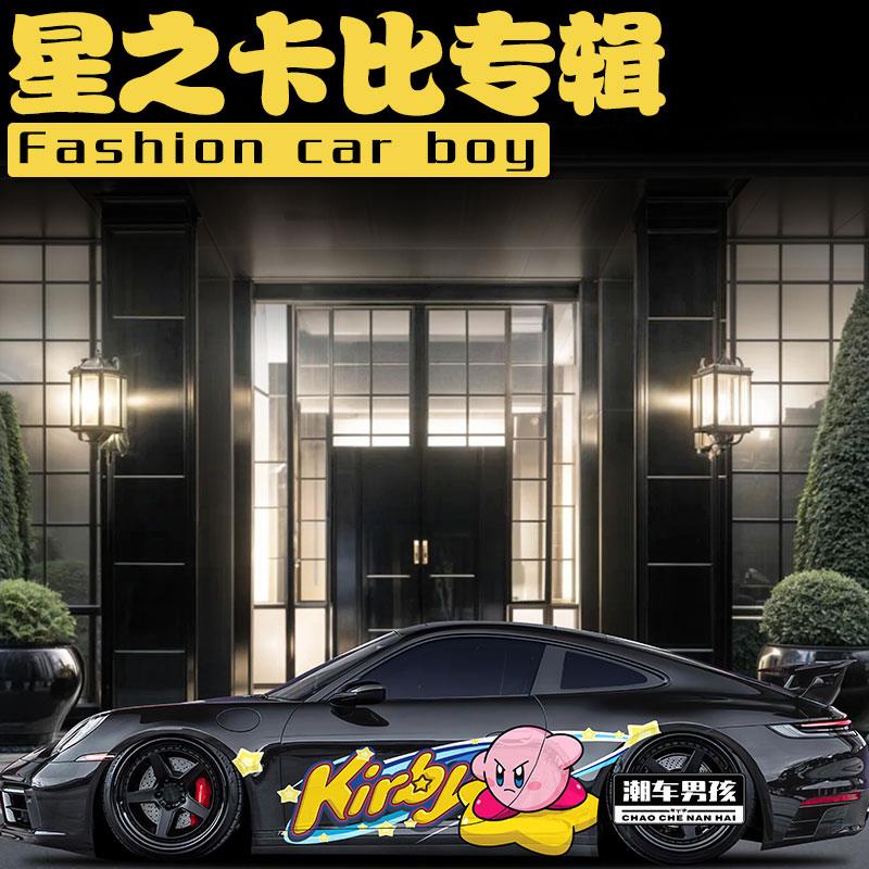 女生专属保时捷911车贴718星之卡比汽车两侧可爱贴纸个性 创意定制