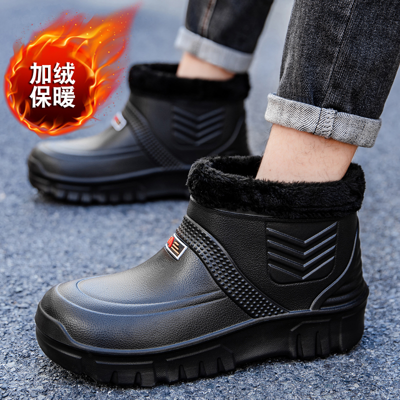 男 固定绒短筒雨靴防滑防水EVA泡沫水靴厨房洗车胶鞋 2025新款 雨鞋