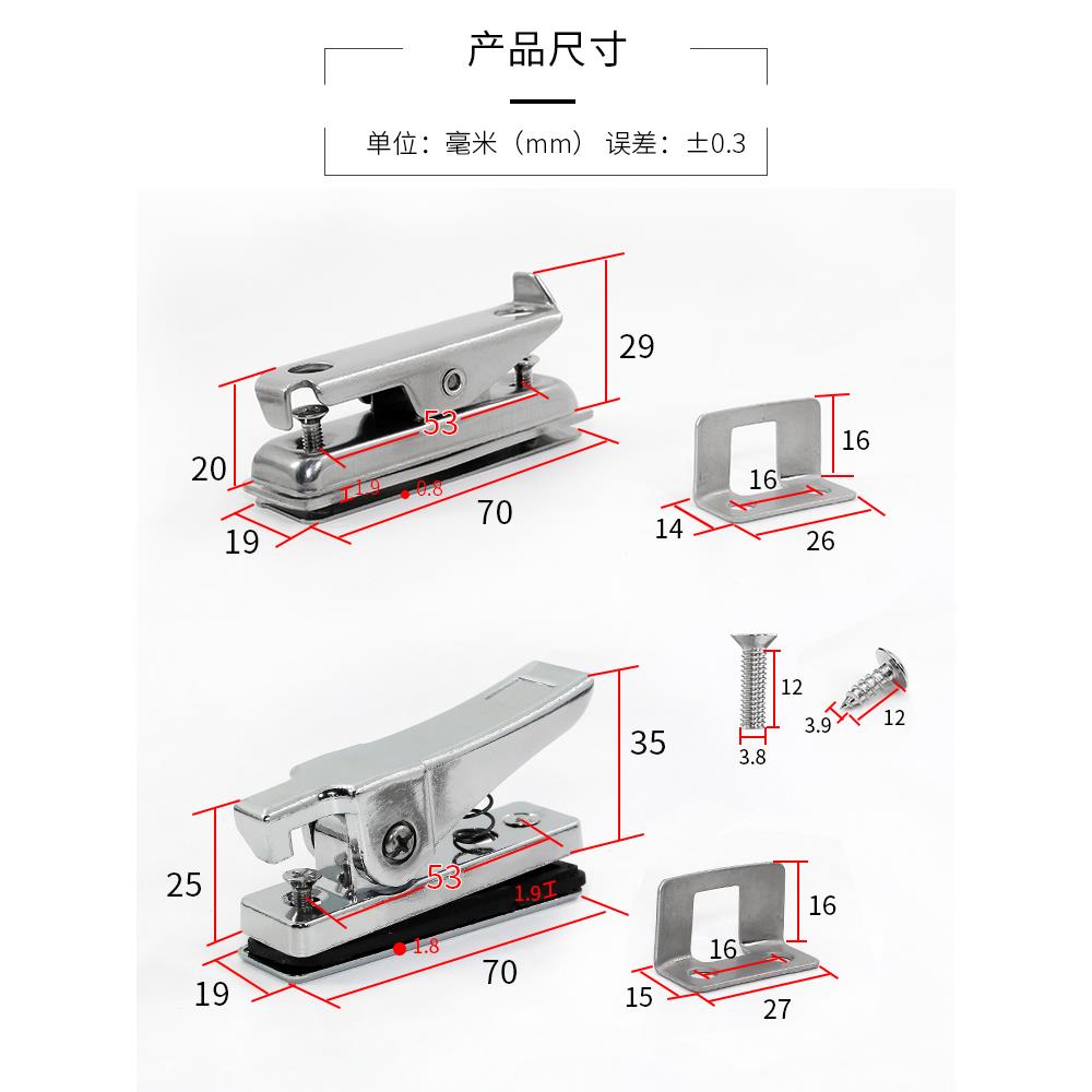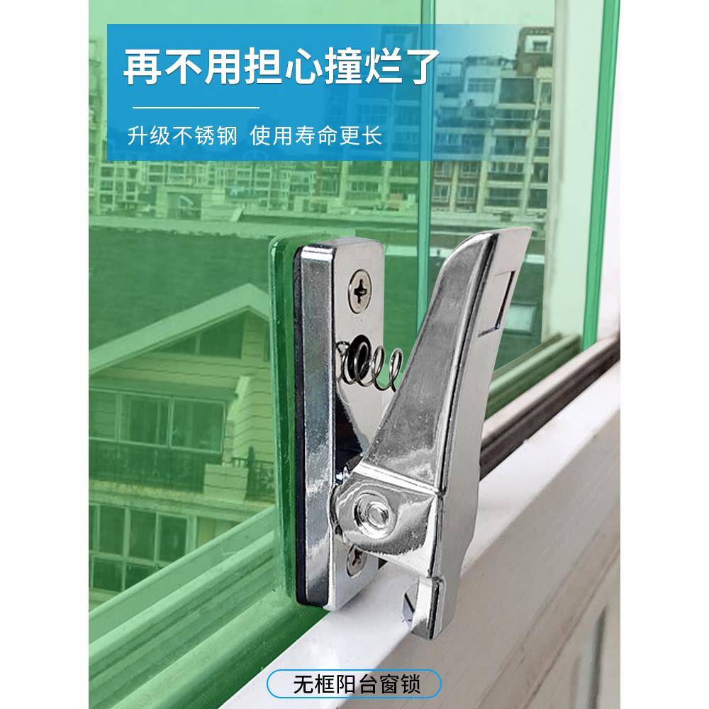 平移无框玻璃窗锁扣不锈钢夹子锁阳台拉门移窗下锁卡扣窗锁配件