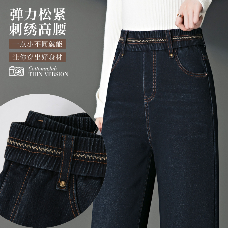 2025年秋季 松紧腰直筒宽松长裤 新款 香蕉牛仔裤 时尚 热风女士牛仔裤